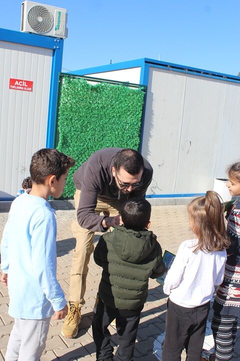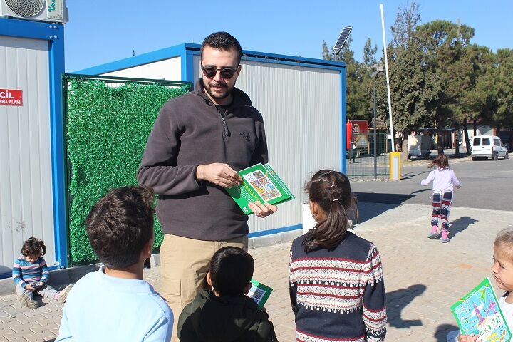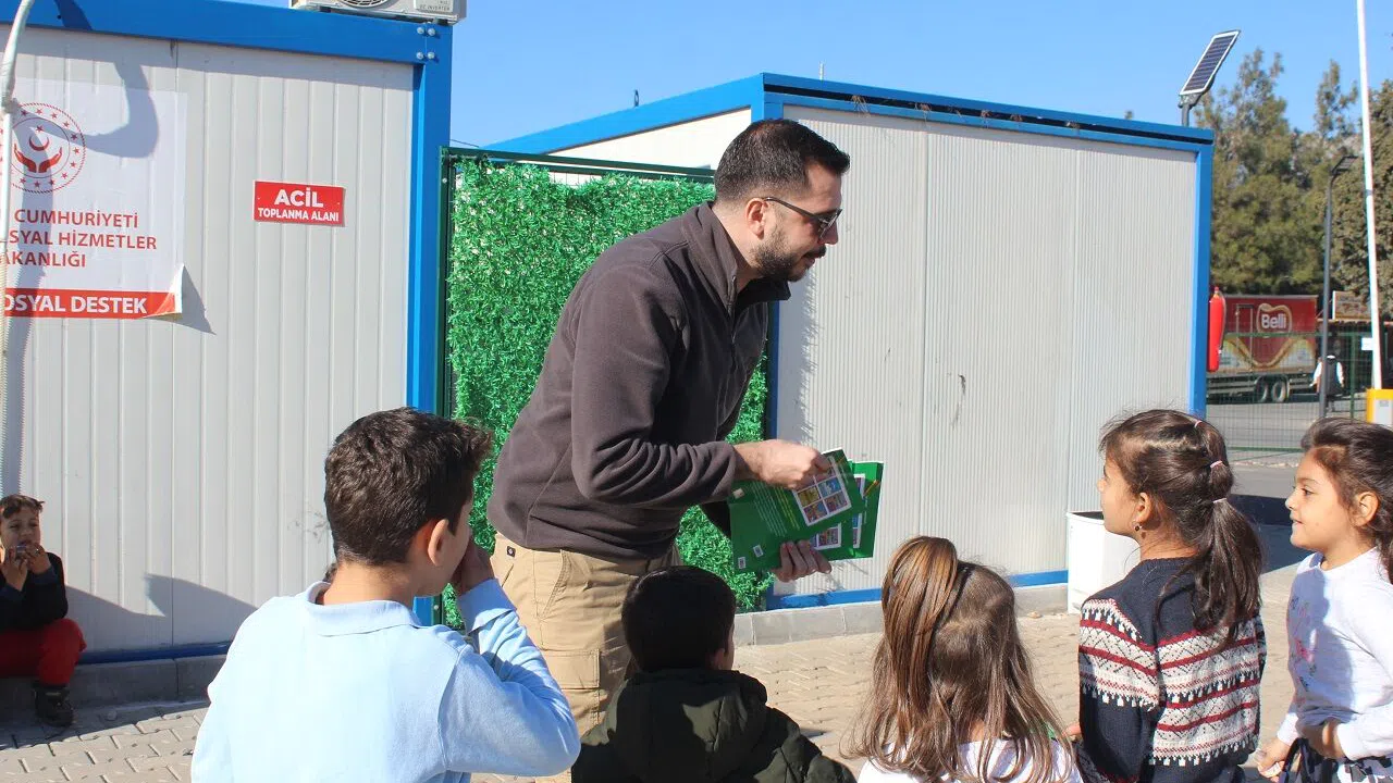 Bu kapsamda BAYKAR ve Şirikçioğlu Konteyner Kentlerinden sorumlu Kaymakam Ömer Nergiz, konteynerde kalan çocuklara boyama kitabı hediye etti.