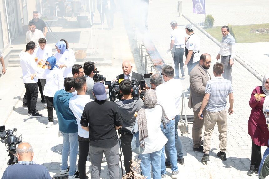 Tabi böylece hem derslerimize devam ederken hem de bu tür sosyal etkinlikler yapacağımız mekanlar inşa etmiş olduk. Bugünkü etkinliğimize gelecek olursak. Bildiğiniz gibi irişgit Maraş’a özgü bir sucuk türü ve lezzeti. Bugünkü etkinliğimizde de bir taraftan irişkitimizi şehir dışından gelen öğrencilerimize tanıtıyor, bir taraftan da moral ve motivasyon sağlamaya çalıştık. Nisan ayının bu güzel gününde öğrencilerimizle bir aradayız. Ben etkinliğimizin sponsoru olan Akmansoy Marketlere, festival tadındaki bu program için çok çok teşekkür ediyorum.”