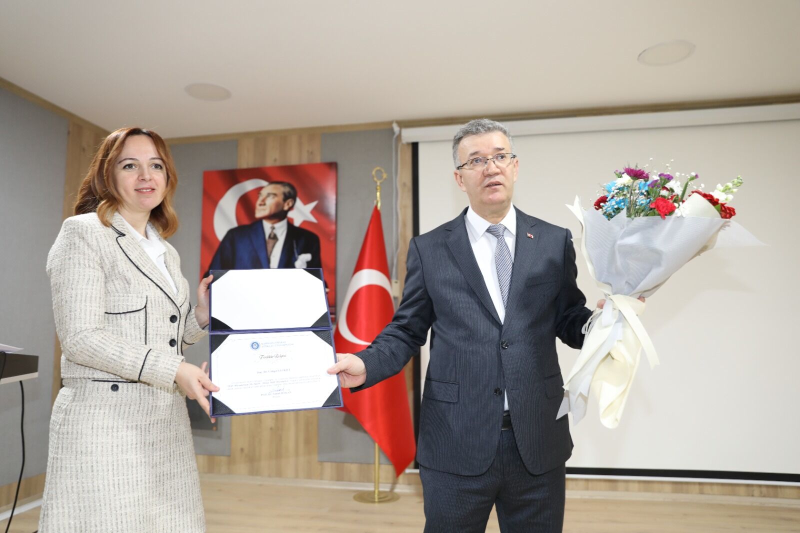 Fotoğraf çekimi ile son bulan konferansın anısına KİÜ Rektör Yardımcısı Prof. Dr. Burcu Erşahan tarafından Doç. Dr. Şavkılı’ya teşekkür belgesi ve çiçek takdiminde bulunuldu.
