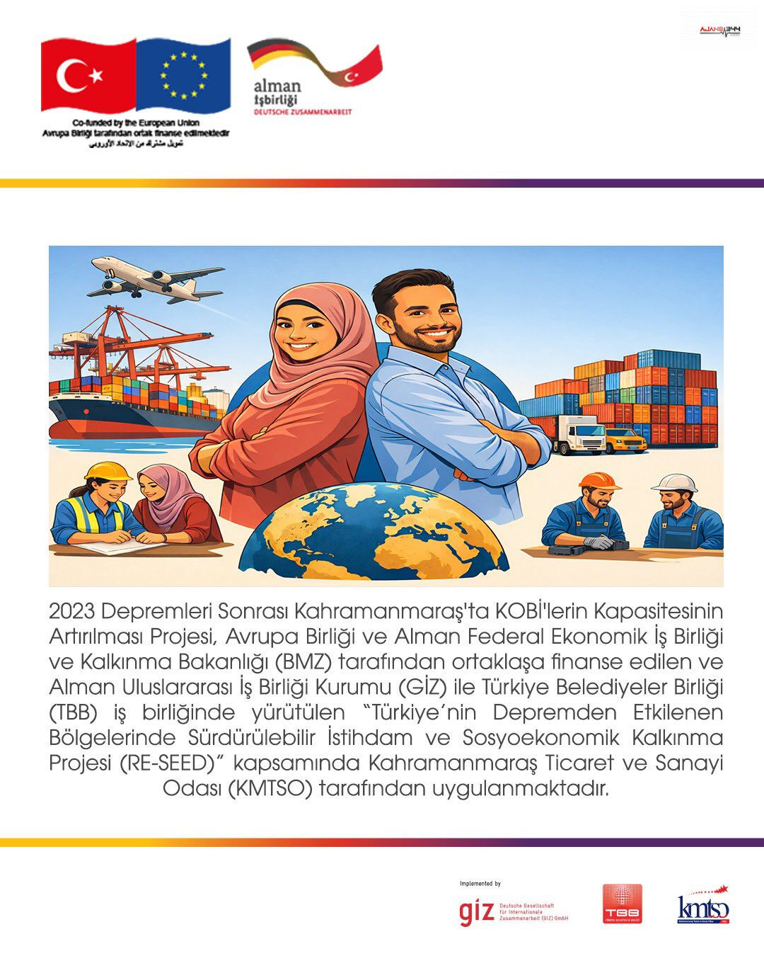 Kahramanmaraş’ta 6 Şubat depremlerinin ardından Ticaret ve Sanayi Odası tarafından ekonomik hayatın yeniden güçlendirilmesine yönelik önemli bir adım daha atıldı. Avrupa Birliği ile Alman Federal Ekonomik İş Birliği ve Kalkınma Bakanlığı tarafından ortaklaşa finanse edilen, Alman Uluslararası İş Birliği Kurumu (GIZ) ve Türkiye Belediyeler Birliği iş birliğiyle yürütülen RE-SEED Projesi kapsamında, şehirde faaliyet gösteren küçük ve orta ölçekli işletmelere yönelik kapsamlı destek programı hayata geçirildi.