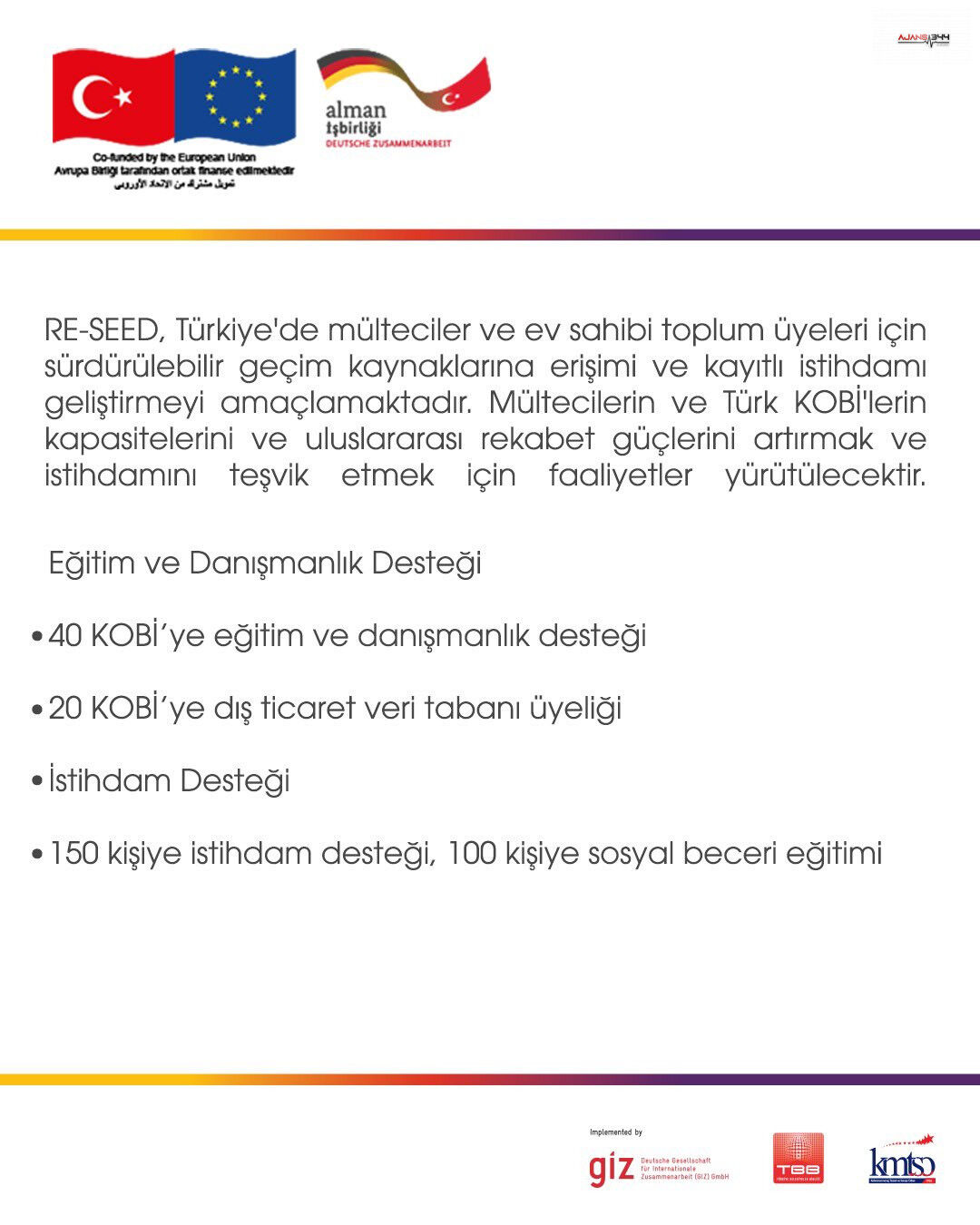Yürütülen çalışmalar çerçevesinde 40 KOBİ’ye eğitim ve danışmanlık desteği sağlanması, 20 KOBİ’nin dış ticaret veri tabanlarına erişiminin desteklenmesi planlanıyor. Bunun yanı sıra 150 kişiye istihdam desteği verilmesi, 100 kişiye ise sosyal beceri eğitimi sunulması öngörülüyor. Desteklerin, hem işletmelerin sürdürülebilirliğine hem de yerel iş gücünün niteliğinin artırılmasına katkı sağlaması bekleniyor.