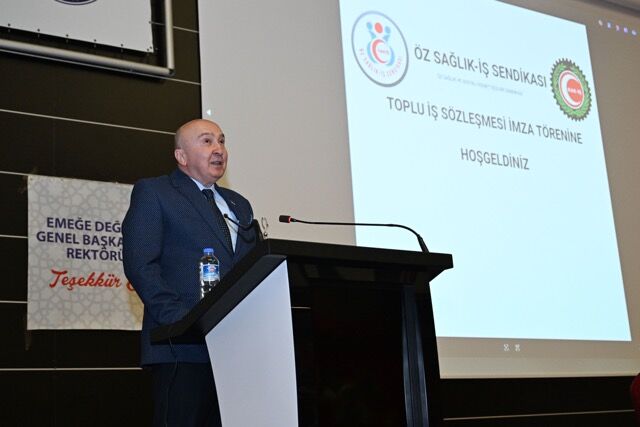 Sağlık Uygulama ve Araştırma Hastanesi Baş Müdürü İbrahim Palabıyık ise “Üniversitemizin mensubu olan personellerimizin mali ve sosyal haklar hususundaki hassasiyetleri ile kurumsal planlamalarımız doğrultusunda süreç yürütülmüştür. Öz Sağlık-İş Sendikasıyla imzaladığımız sözleşmenin hayırlı olmasını dilerim.” dedi.