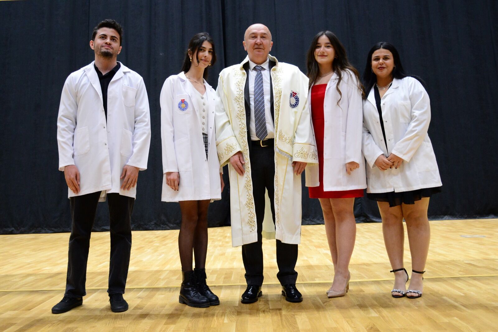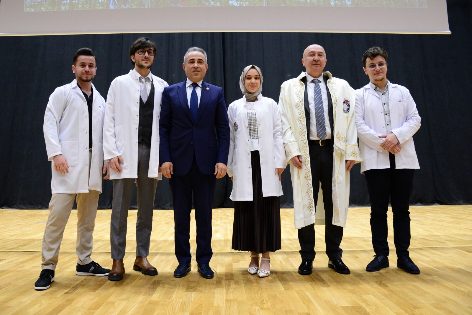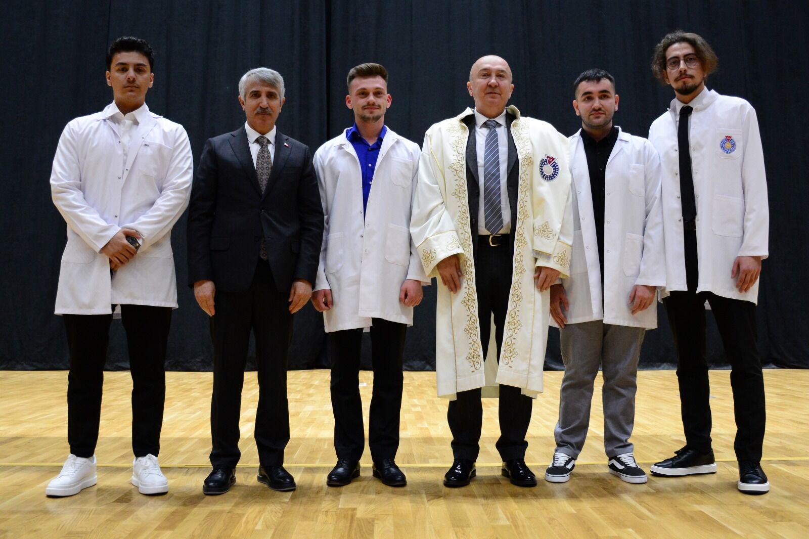 Törende Vali Ünlüer, Milletvekili Karadutlu, Büyükşehir Belediye Başkanı Güngör, Rektör Yasım, protokol üyeleri ve akademisyenler tarafından Tıp Fakültesine 2022-2023 ve 2023-2024 Akademik Yıllarında kayıt yaptıran öğrencilere beyaz önlükleri giydirildi.
