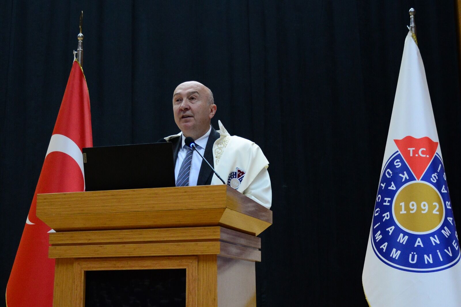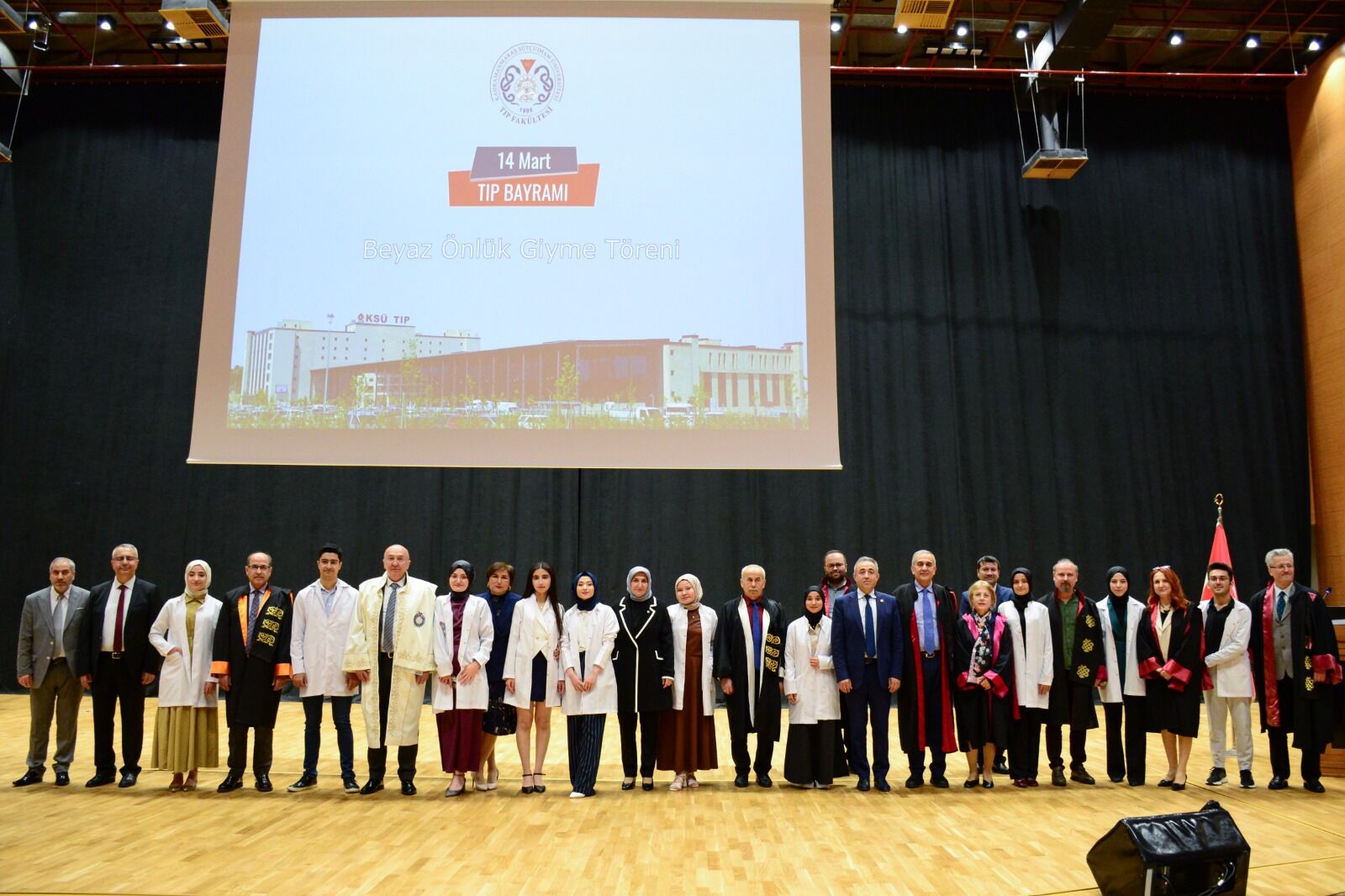 KSÜ Yunus Emre Kongre ve Kültür Merkezi Sezai Karakoç Konferans Salonunda gerçekleştirilen etkinliğe Kahramanmaraş Valisi Mükerrem Ünlüer ve eşi Dr. Selma Ünlüer, Kahramanmaraş Milletvekili Dr. İrfan Karadutlu, Kahramanmaraş Büyükşehir Belediye Başkanı Hayrettin Güngör, KSÜ Rektörü Prof. Dr. Alptekin Yasım ve eşi Fatma Yasım, İl Emniyet Müdürü Nurettin Gökduman, Tıp Fakültesi Dekanı Prof. Dr. Hafize Öksüz, Kahramanmaraş Tabipler Odası Başkanı Lütfi Tiyekli, il protokolü üyeleri, akademisyenler, öğrenciler ve öğrenci aileleri katıldı.
