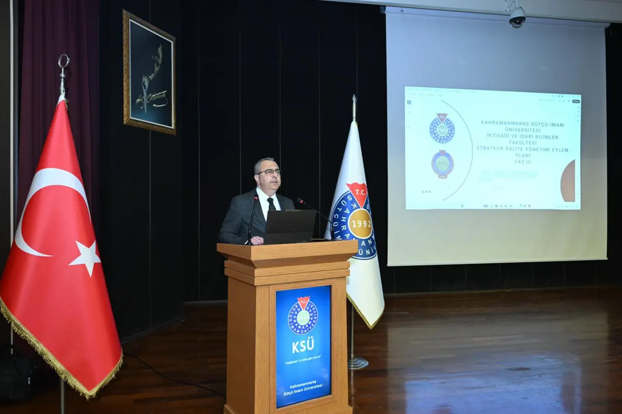 Kahramanmaraş Sütçü İmam Üniversitesi (KSÜ) İktisadi ve İdari Bilimler Fakültesi 2025-2026 Bahar Yarıyılı Akademik Kurul Toplantısı gerçekleştirildi. Toplantıya, KSÜ Rektörü Prof. Dr. İbrahim Taner Okumuş’un yanı sıra fakülte yönetimi, akademik kadro ve idari personel katıldı.