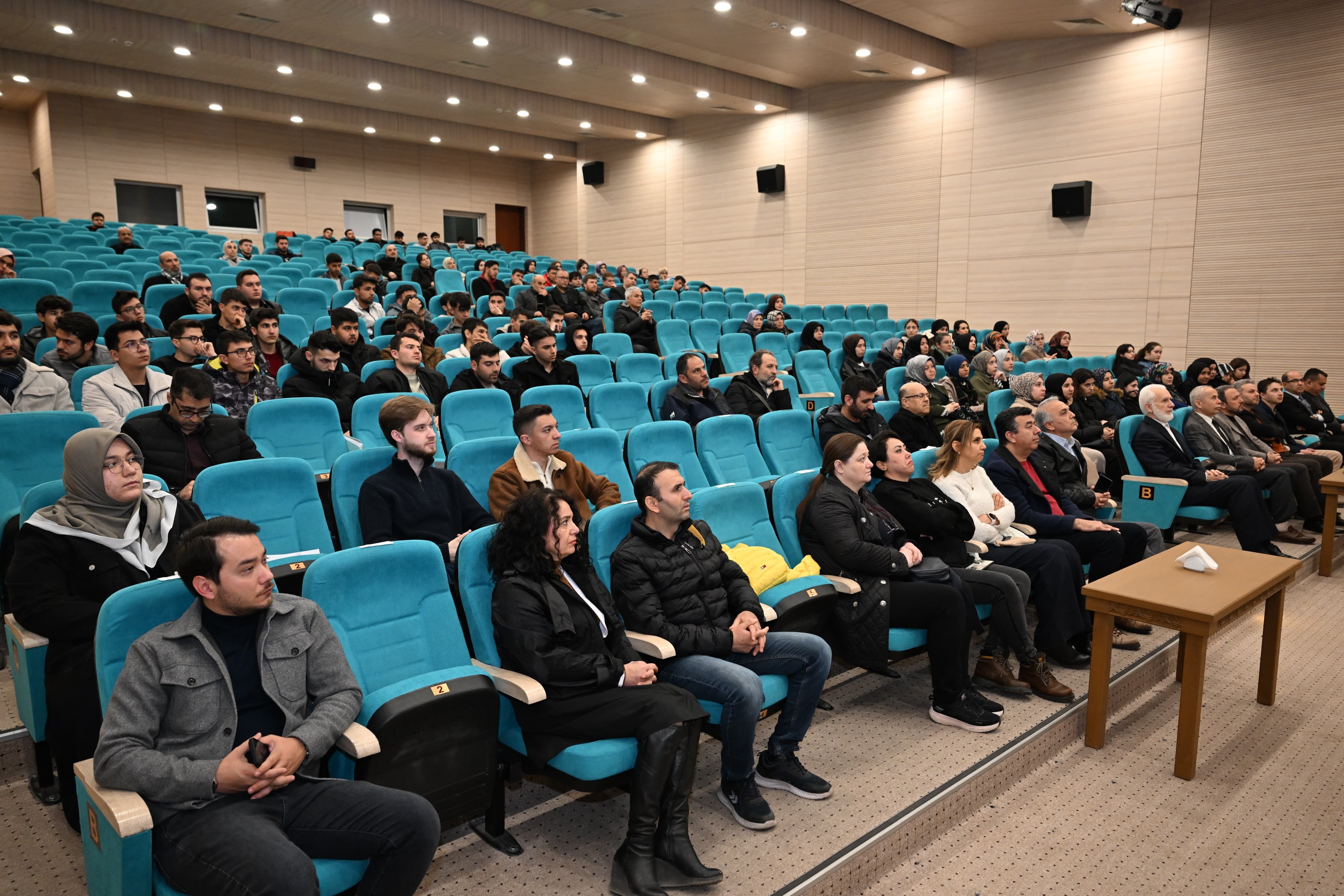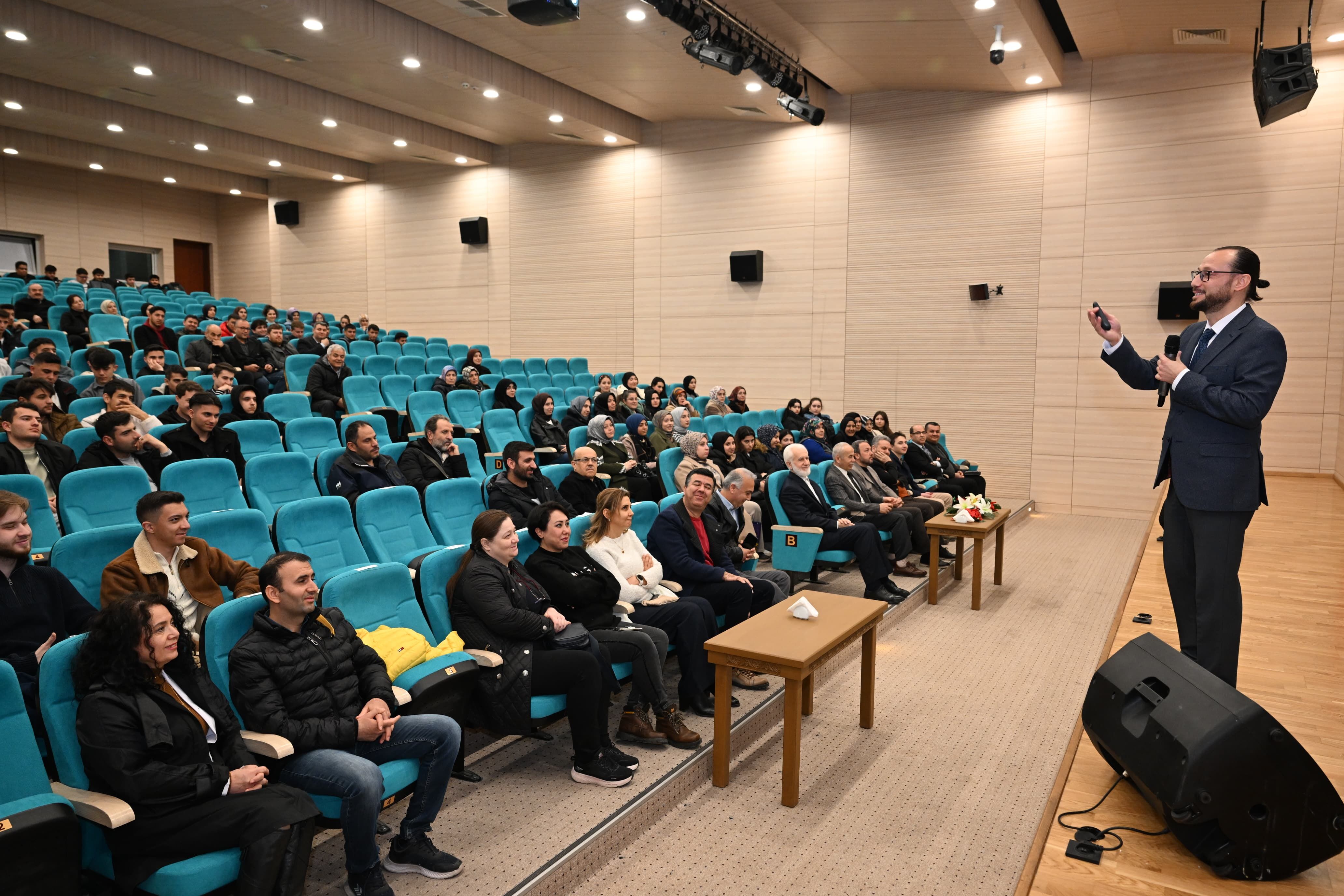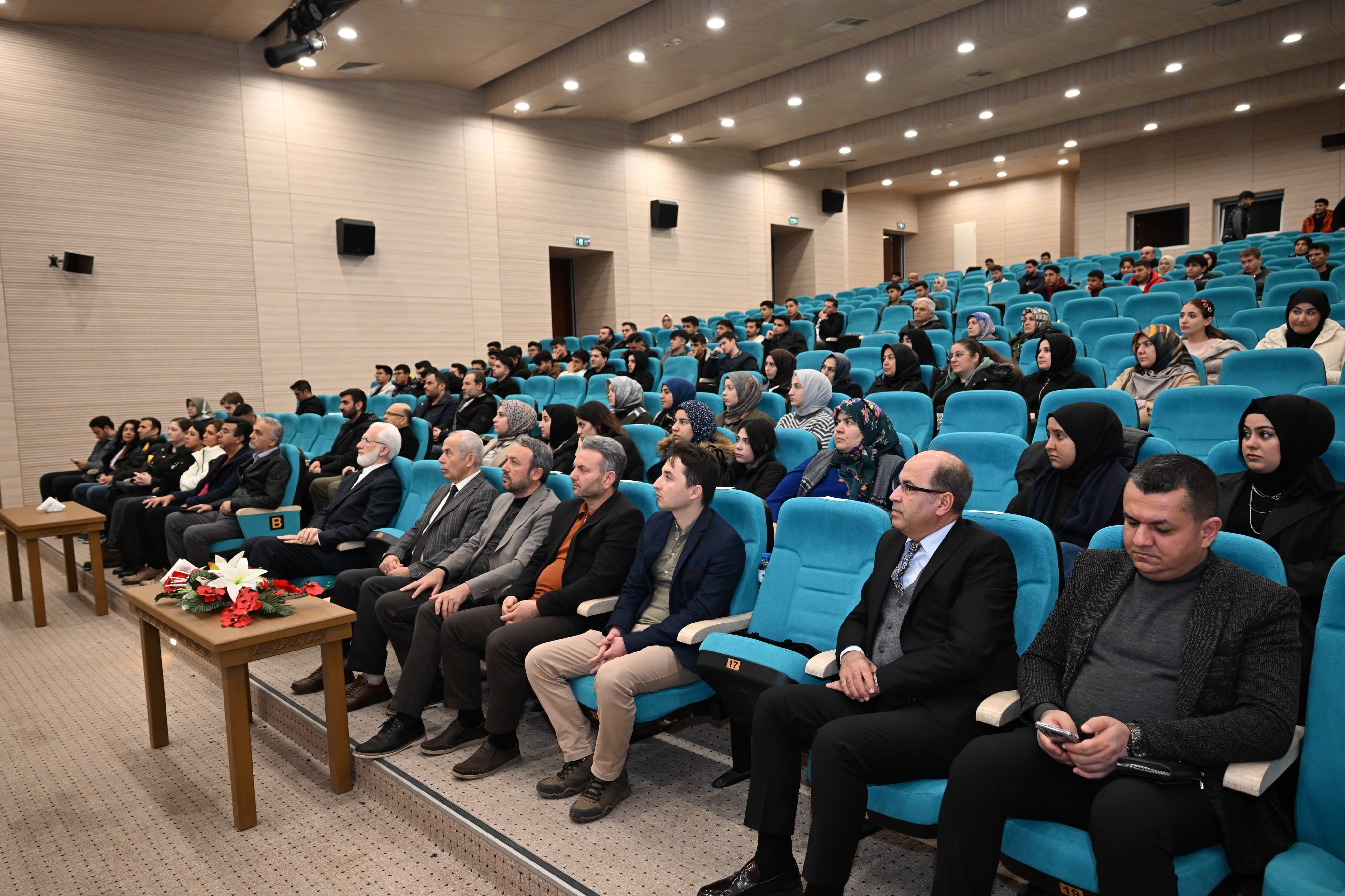 Konferansa KSÜ Rektör Yardımcıları Prof. Dr. Nuri Kahveci ve Prof. Dr. Orhan Doğan'ın yanı sıra, akademisyenler ve çok sayıda öğrenci katıldı. Program, İlahiyat Fakültesi öğrencisi Mehmed Said Sarıtürk’ün Kur’an-ı Kerim tilavetiyle başladı. Topluluk üyeleri, Sağlık Bilimleri Fakültesi Hemşirelik Bölümü öğrencisi Sümeyye Yüce'nin sunumu ve Seher Taş’ın duygu yüklü şiiriyle etkinliğe anlam kattı.