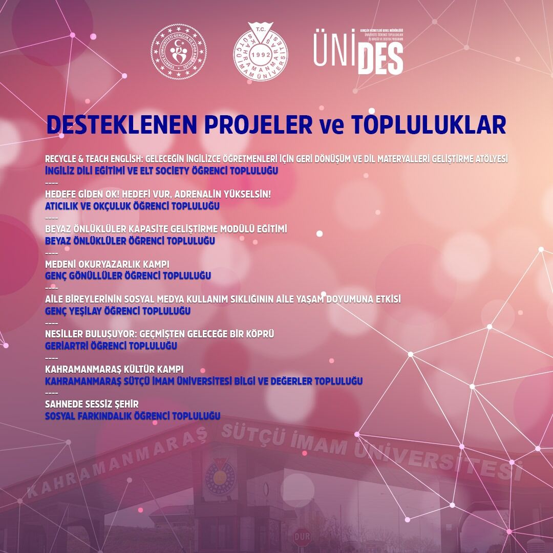 Bu kapsamda Kahramanmaraş Sütçü İmam Üniversitesi (KSÜ) de önemli bir başarıya imza attı. KSÜ bünyesindeki öğrenci toplulukları tarafından hazırlanan 8 proje destek almaya hak kazandı. Bunlardan 3’ü ulusal, 5’i yerel ölçekli projeler olarak dikkat çekti. KSÜ öğrenci topluluklarının kazandığı destekler, üniversitenin eğitim-öğretim faaliyetlerinin yanı sıra sosyal sorumluluk projelerinde de etkinliğini artırmasına olanak sağlayacak.