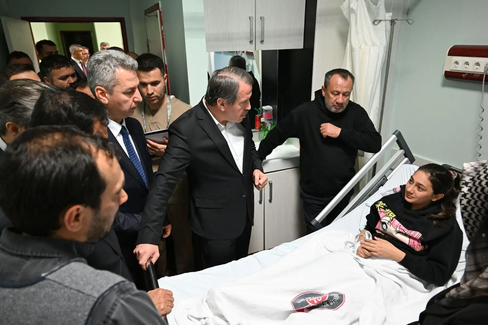 Ziyaret kapsamında yaralı öğrencilerin sağlık durumlarına ilişkin yetkililerden bilgi alan Yalçın, yoğun bakım servisinde tedavileri süren hastaların son durumunu da yerinde inceledi. Sağlık çalışanlarının yürüttüğü sürece ilişkin değerlendirmelerde bulunan Yalçın, özverili çalışmalar dolayısıyla teşekkürlerini iletti.