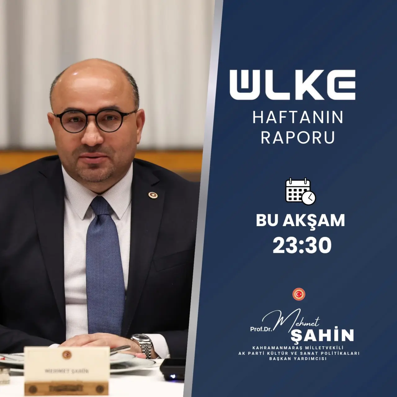 AK Parti Kahramanmaraş Milletvekili Prof. Dr. Mehmet Şahin’in katılacağı program, Ülke TV ekranlarında yayınlanan ve haftanın öne çıkan gelişmelerinin değerlendirildiği Ülke Haftanın Raporu olacak. Programda Türkiye gündeminde yer alan siyasi, sosyal ve ekonomik gelişmelerin ele alınması bekleniyor.