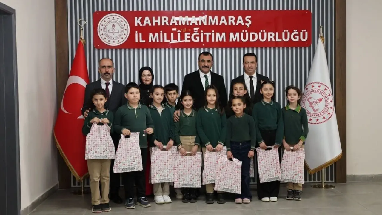 Kahramanmaraş’ta bayramın sıcak ve paylaşım dolu atmosferi, küçük öğrencilerin gerçekleştirdiği anlamlı bir ziyaretle bir kez daha hissedildi. Yusuf Çavuş İlkokulu öğrencileri, bayram dolayısıyla Kahramanmaraş İl Milli Eğitim Müdürlüğü’ne giderek İl Milli Eğitim Müdür Yardımcısı Mehmet Üzüm’ü makamında ziyaret etti. Çocukların neşesi ve samimiyetiyle renklenen buluşma, bayramın özünde yer alan birlik, sevgi ve dayanışma duygularını yansıtan görüntülere sahne oldu.