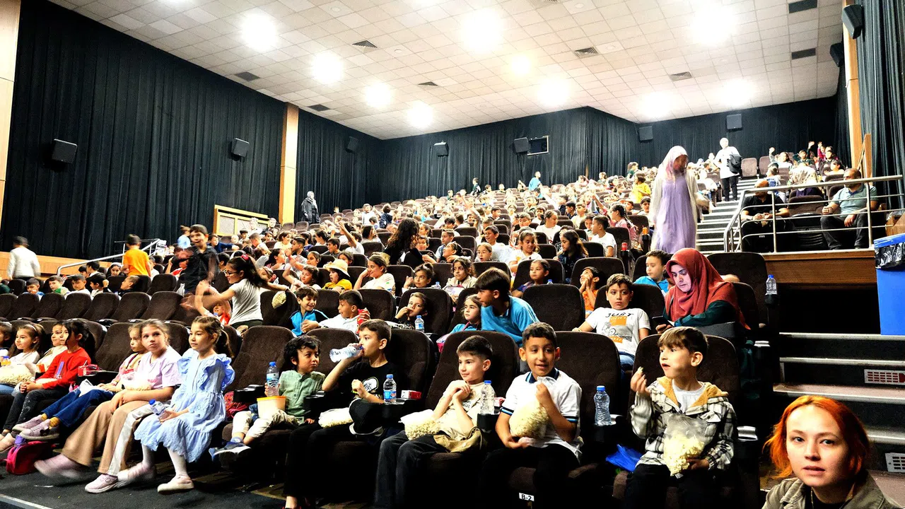 Sinema etkinliği, taşımalı sistemle kırsal mahallelerden alınan öğrencilerin sinema salonuna götürülmesiyle başladı. Çocuklara sinema gösteriminin yanı sıra ikramlar da sunularak, tam anlamıyla bir şenlik havası oluşturuldu. Gösterim boyunca çocukların heyecanı, filmin her sahnesine yansıyan kahkahaları dikkat çekti.