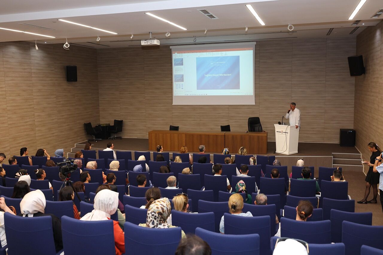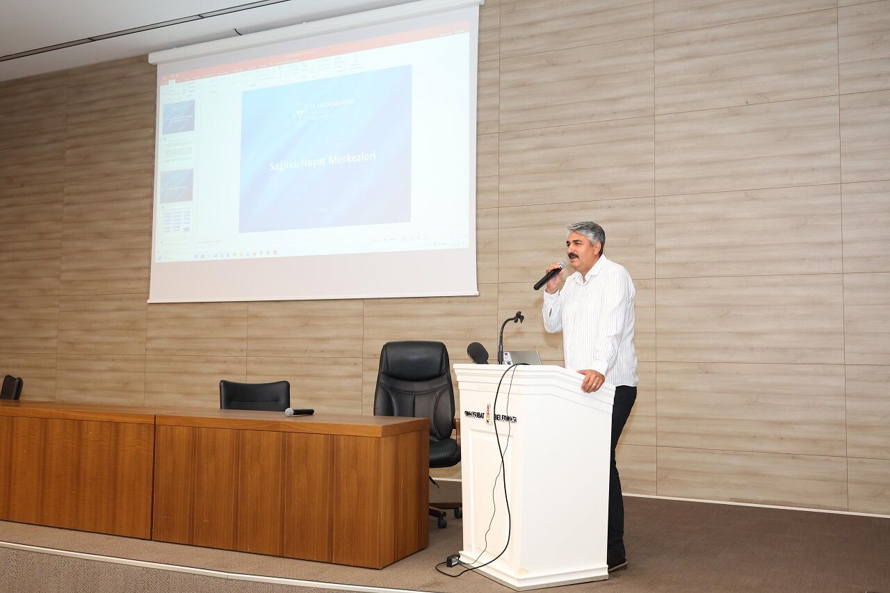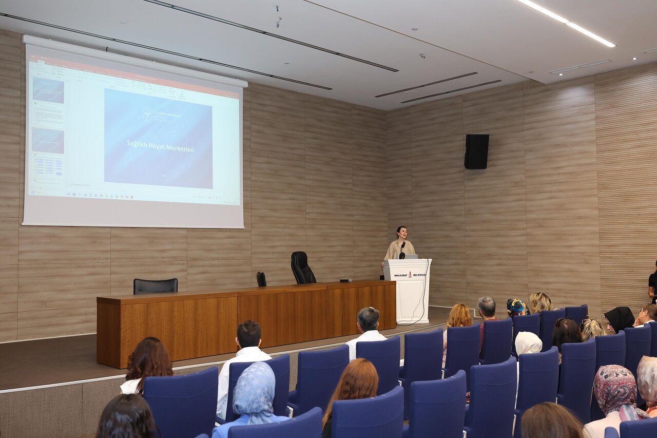 Eğitim programı kapsamında İlçe Sağlık Müdürü Dr. Gülsüm Kerkütlüoğlu, Sağlıklı Hayat Merkezleri’nin işleyişi ve sunduğu hizmetler hakkında bilgilendirme yaptı. Merkezlerin birey ve toplum sağlığı açısından oynadığı rol, örnek uygulamalarla aktarıldı.