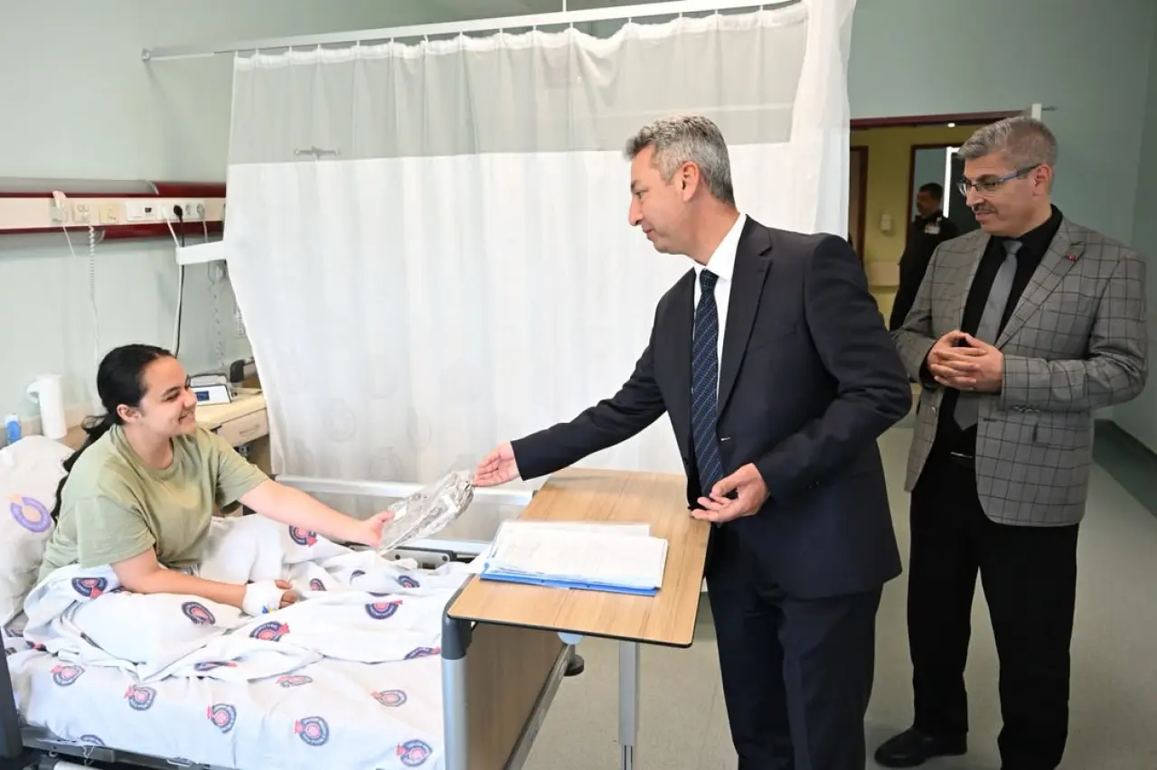 Rektör Okumuş, servisleri tek tek gezerek çocukların bayramını kutladı. Ziyaret sırasında minik hastalara çeşitli hediyeler verildi. Çocuklarla yakından ilgilenen Okumuş’un samimi yaklaşımı, hastane ortamında bayram havası oluşturdu.