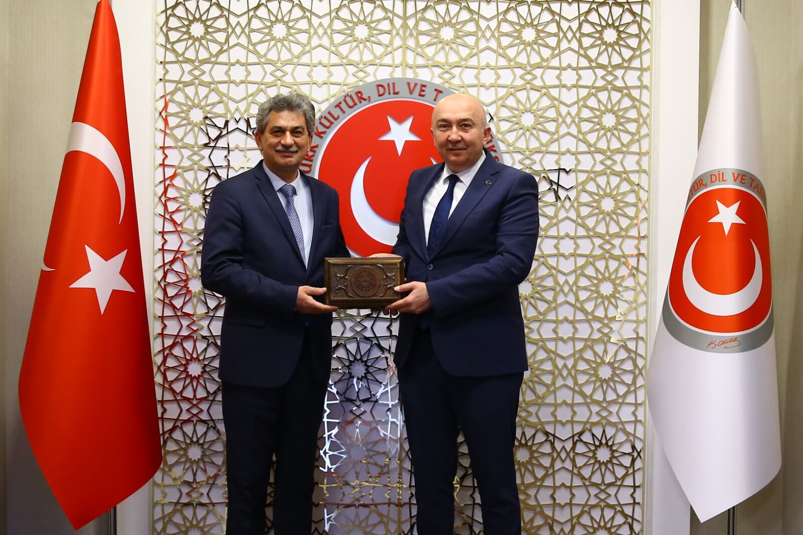 Görüşme sonrasında Rektör Prof. Dr. Alptekin Yasım, Başkan Prof. Dr. Derya Örs’e ziyaretin anısına, üzerinde KSÜ logosunun işlendiği Kahramanmaraş’ın geleneksel el sanatı örneklerinden ceviz oyma sandık hediye etti.