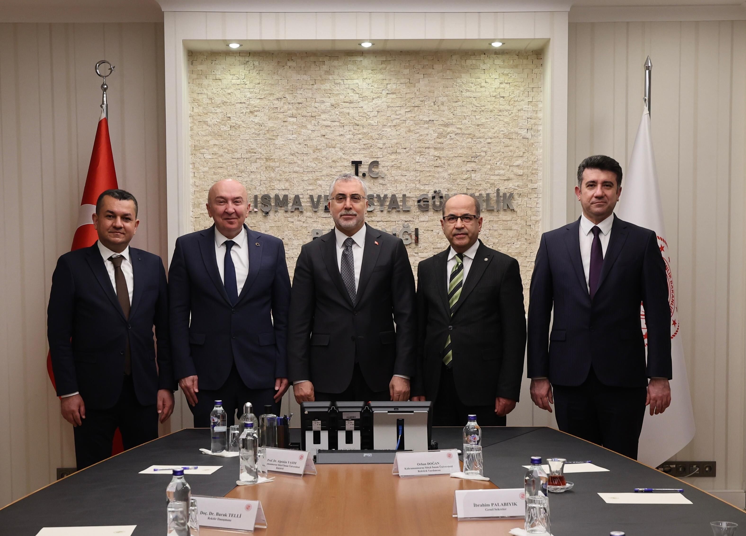 Çalışma ve Sosyal Güvenlik Bakanı Prof. Dr. Vedat Işıkhan ise nazik ziyaretlerinden dolayı KSÜ heyetine teşekkürlerini sundu.