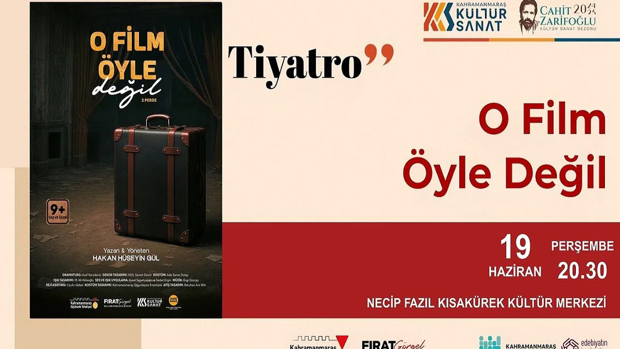 Kahramanmaraş Büyükşehir Belediyesi tarafından şehrin kültür sanat hayatına kazandırılan Sahne Maraş Tiyatro Okulu, başarılı tiyatro gösterimlerine bir yenisini daha ekliyor. Sanatseverlerin yoğun ilgiyle takip ettiği tiyatro oluşumu, geçtiğimiz ay büyük beğeni toplayan ve önemli bir ödüle layık görülen oyununu yeniden seyirciyle buluşturmaya hazırlanıyor. Sahne Maraş Tiyatro Okulu’nun usta eğitmenleri ve yetenekli oyuncuları tarafından sahnelenen “O Film Öyle Değil” adlı yetişkin tiyatro oyunu, 19 Haziran Perşembe günü saat 20.30’da Necip Fazıl Kısakürek Kültür Merkezi’nde izleyiciyle buluşacak.