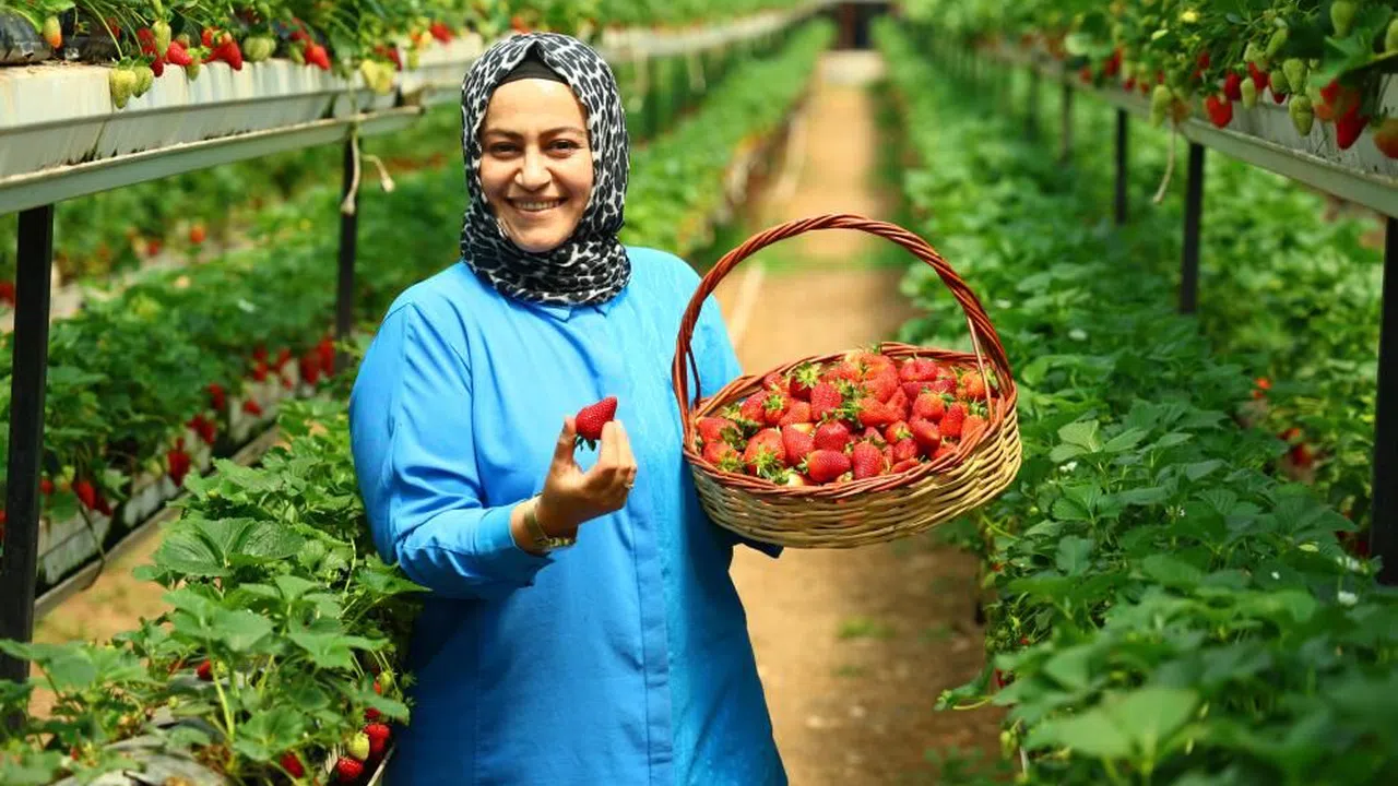 Örtü altında serada görev yapan Ayşegül İzgi ise "Burada alanda görüldüğü gibi gelip dalından kopartıp hem ailelerimiz için kaliteli bir ortam tüm anneleri ve aileleri bekliyoruz" ifadelerini kullandı.