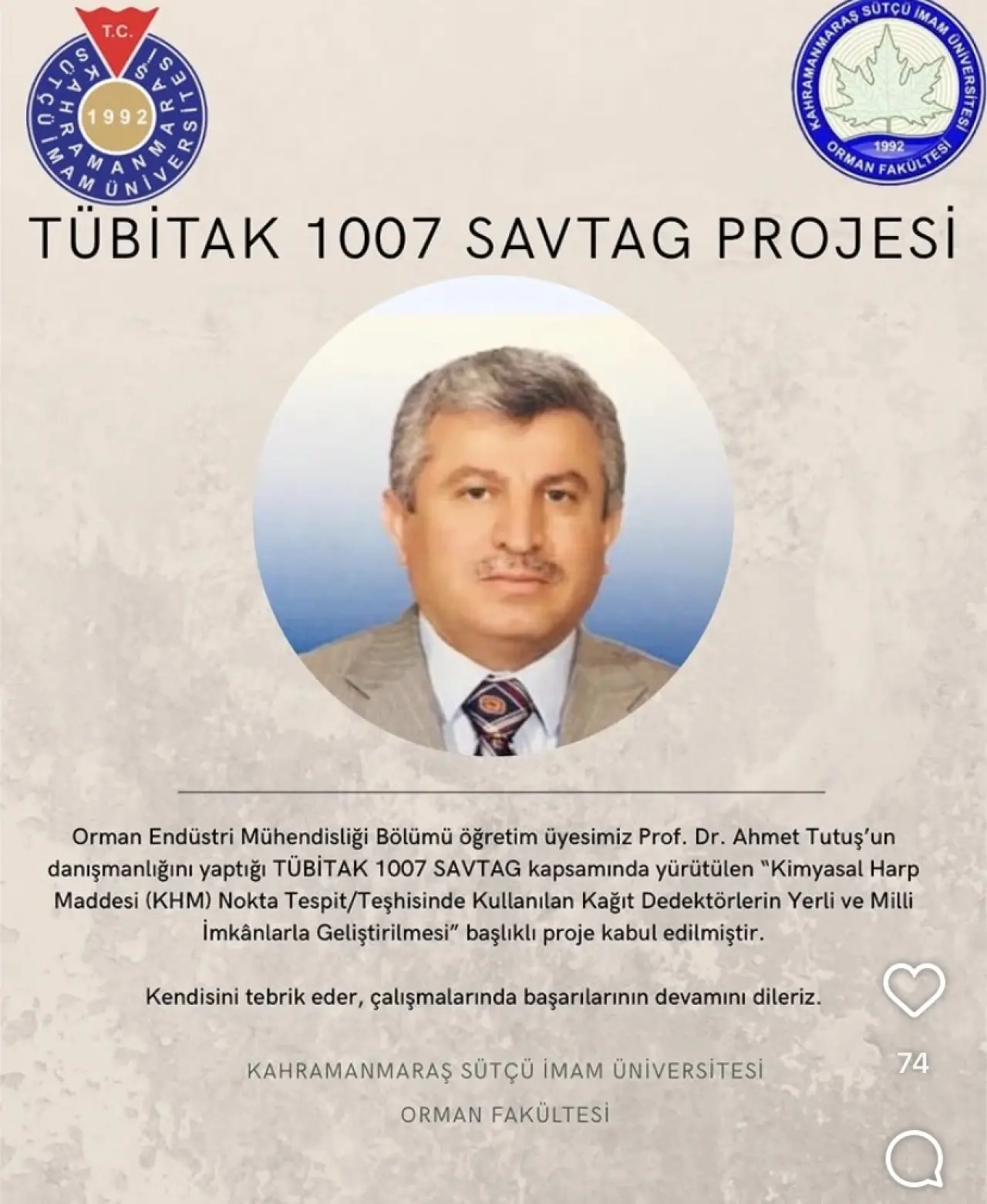 Kahramanmaraş Sütçü İmam Üniversitesi (KSÜ) Orman Fakültesi bünyesinde yürütülen önemli bir bilimsel çalışma, TÜBİTAK tarafından desteklenmeye hak kazandı. Orman Endüstri Mühendisliği Bölümü öğretim üyesi Prof. Dr. Ahmet Tutuş’un danışmanlığında hazırlanan proje, TÜBİTAK 1007 SAVTAG programı kapsamında kabul edildi.