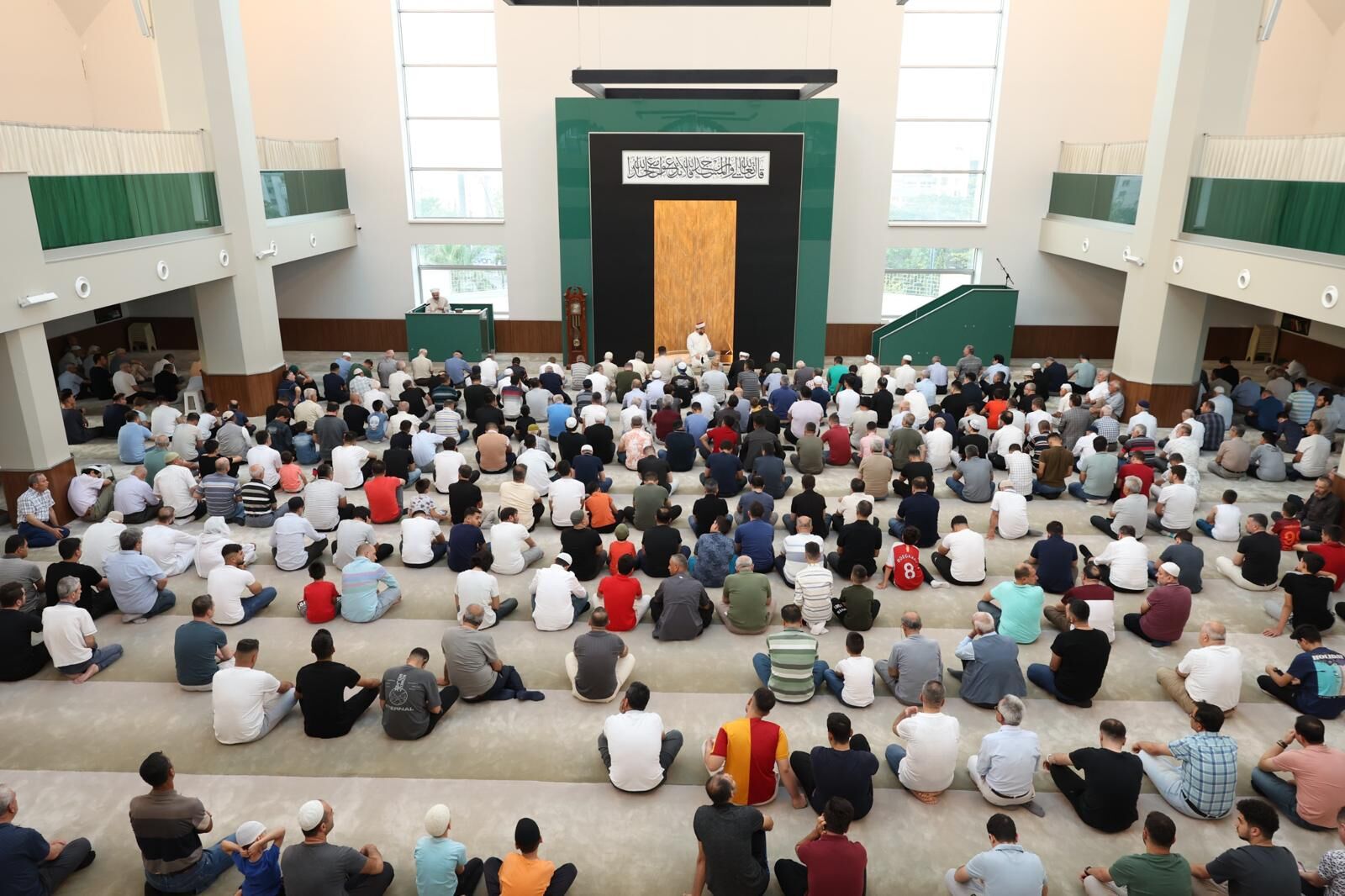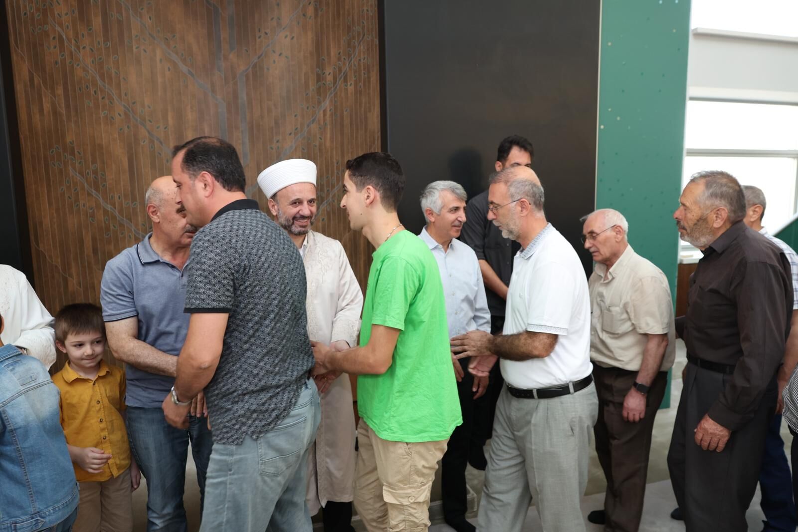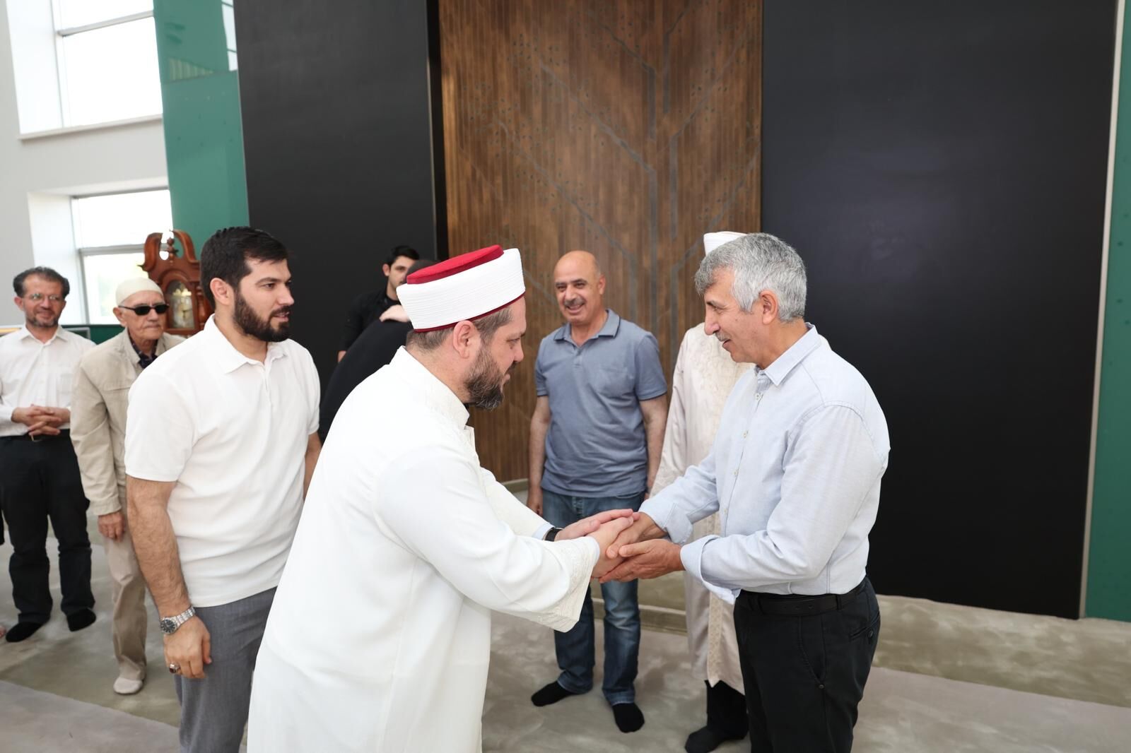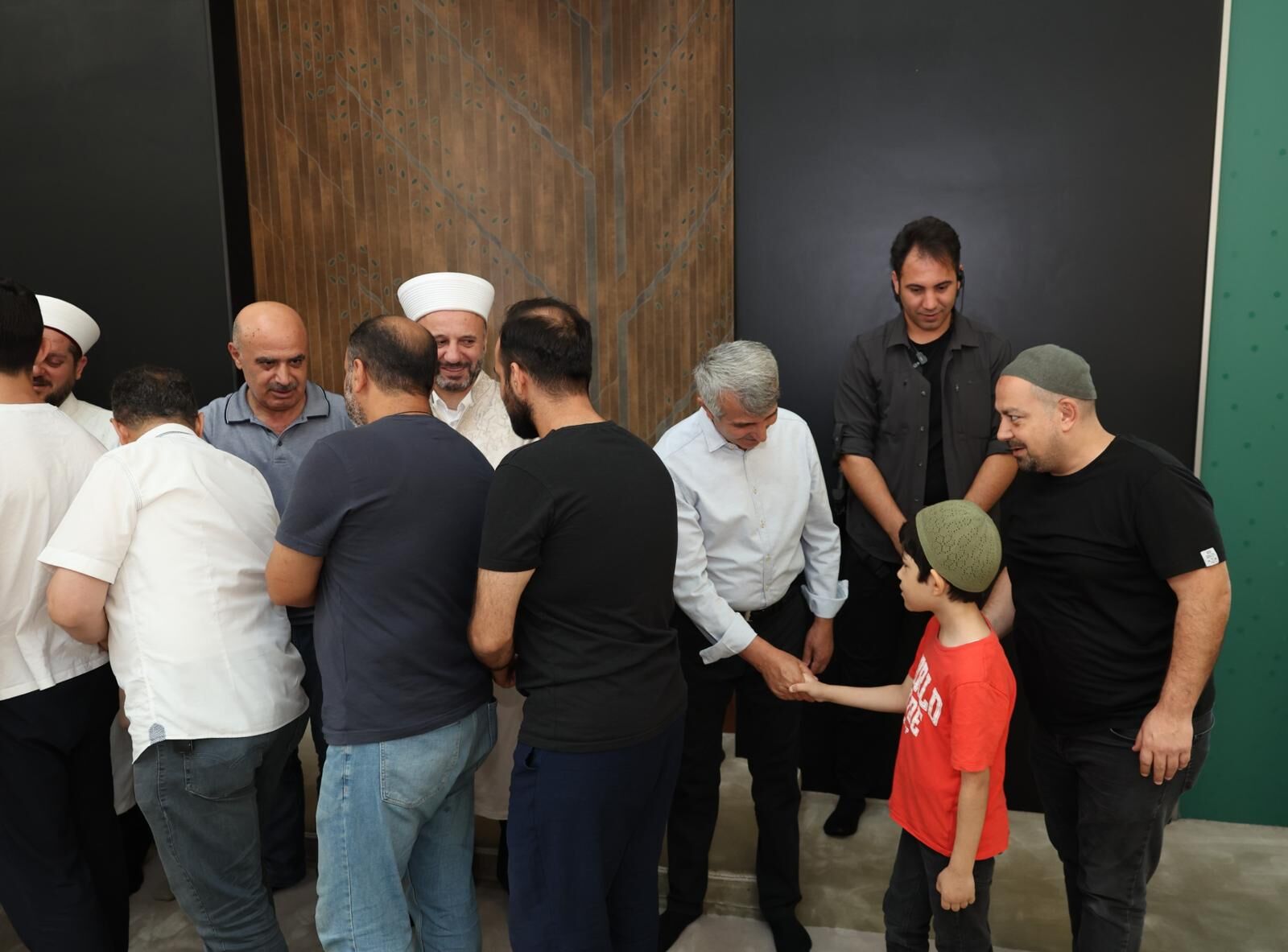 Cami içinde gerçekleştirilen bayramlaşma sırasında vatandaşlar uzun kuyruklar oluşturdu.