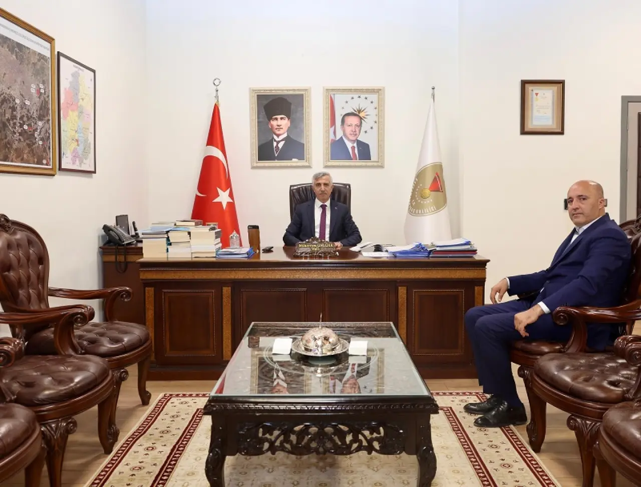 Kahramanmaraş’ta görevine başladığı günden bu yana şehirde yürütülen çalışmaların koordinasyonunu sürdüren Vali Mükerrem Ünlüer, çeşitli ziyaret ve kabullere ev sahipliği yaptı. Cumhurbaşkanlığı İletişim Başkanlığı Gaziantep Bölge Müdürü Mücahit Taşkın, Vali Ünlüer’i makamında ziyaret etti.