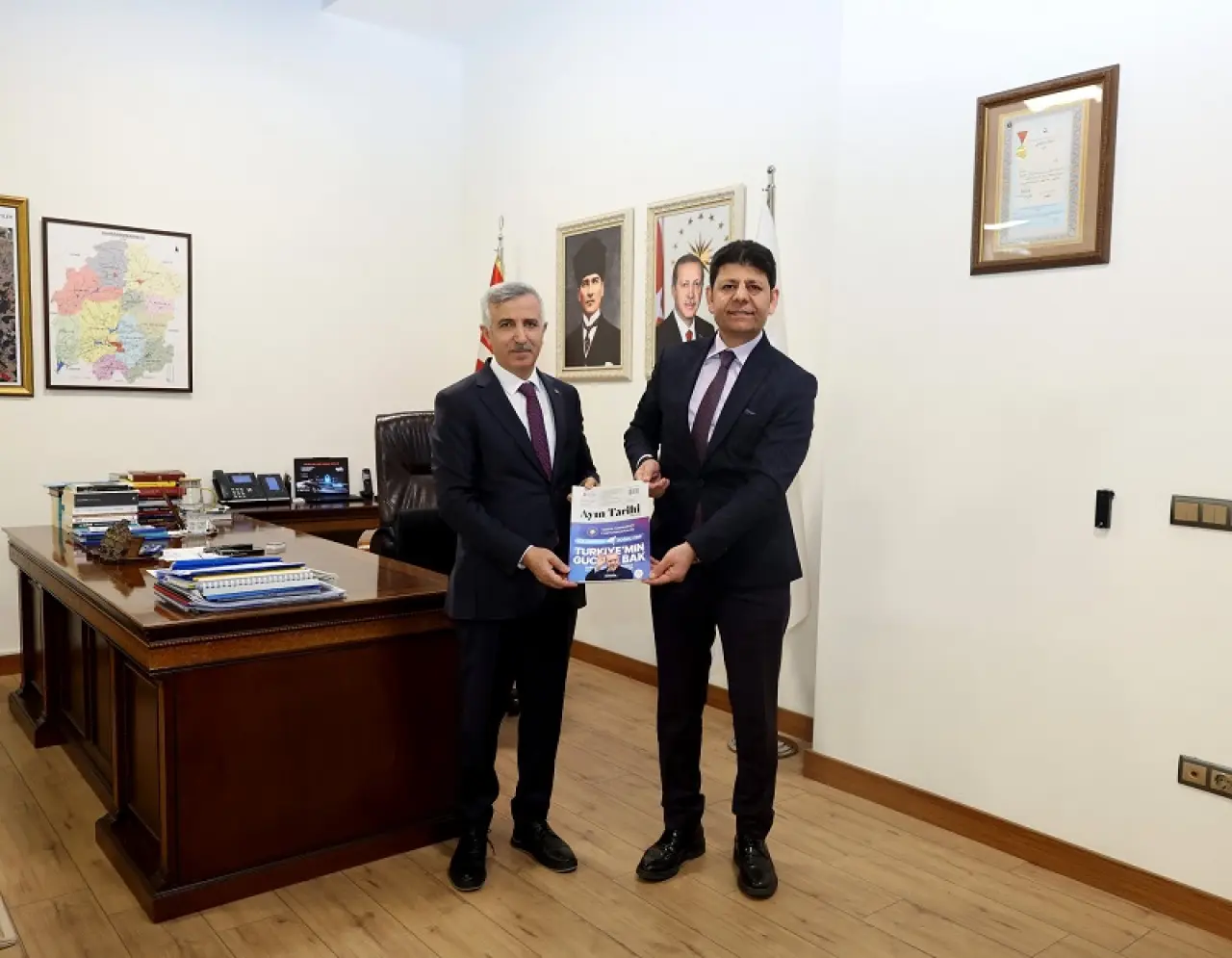Ziyaret kapsamında Müdür Mücahit Taşkın, Cumhurbaşkanlığı İletişim Başkanlığı tarafından yayımlanan ve Türkiye’nin gündemi, dış politika gelişmeleri, kültürel içerikler ile Cumhurbaşkanı Recep Tayyip Erdoğan’ın faaliyetlerini kapsayan “Ayın Tarihi” dergisinin son sayısını Vali Mükerrem Ünlüer’e takdim etti. Görüşmede güncel gelişmeler ve yürütülen iletişim faaliyetleri üzerine değerlendirmeler yapıldı.
