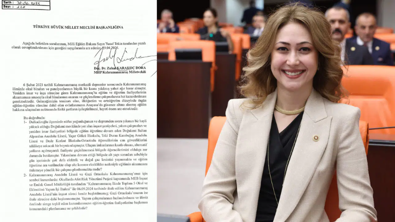 Çağlayancerit ilçesinde 2020 Elazığ depremi sonrası yıkılan Yeşiloba Düzbağ İlkokulu’nun, 2024 yılında AB projesi kapsamında yapımına başlanmasına rağmen tamamlanamadığını ifade eden Dora, “Ek süre alınan bu projede yaşanan gecikmenin sebebi nedir?” diye sordu.