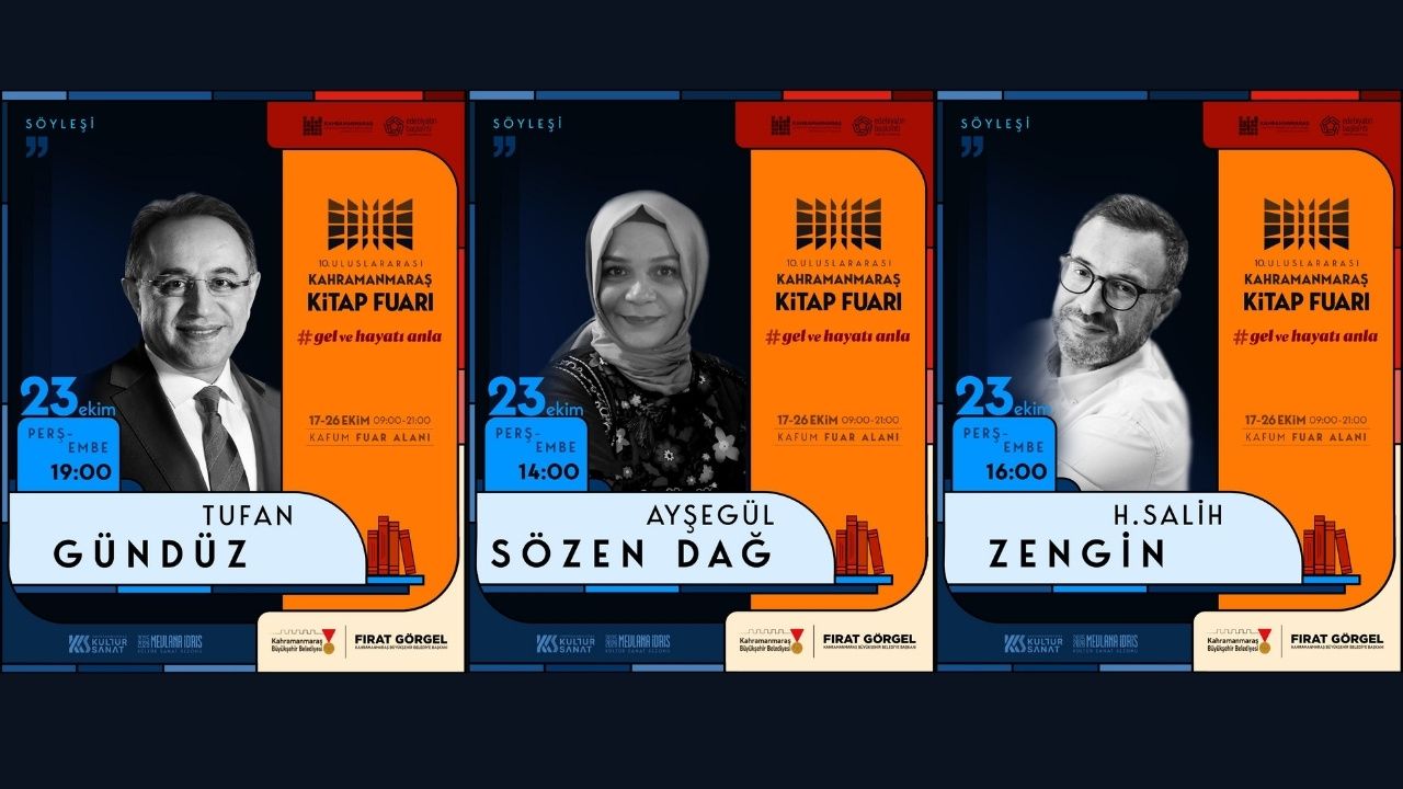 Kahramanmaraş Büyükşehir Belediyesi, 10. Uluslararası Kitap Fuarı’nın sadece kitap satışıyla sınırlı kalmayan bir kültürel buluşma noktası olduğunu vurgularken, 23 Ekim Perşembe günü gerçekleşecek üç ayrı söyleşiye tüm vatandaşları davet etti. Etkinliklerin fuar alanındaki söyleşi salonlarında, ücretsiz olarak gerçekleştirileceği belirtildi.