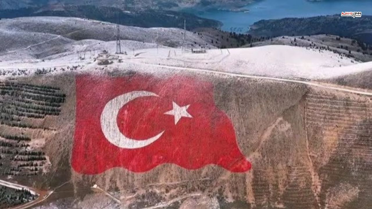 Dünyanın farklı noktalarında bayraklar genellikle direklerde ya da anıtlarda yer alırken, Kahramanmaraş’ta ay yıldız doğrudan dağın yamacına işlenmiş durumda. Kar yağışıyla birlikte bu özel çalışma bir kez daha dikkat çekti.