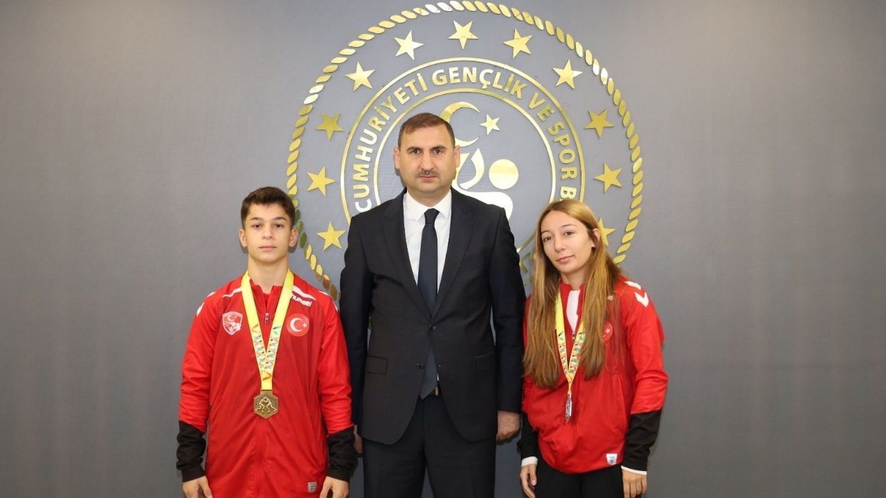 Uluslararası arenada Türkiye’yi ve Kahramanmaraş’ı başarıyla temsil eden iki genç sporcu, şehirde büyük gurur oluşturdu. Şehire dönüşlerinin ardından Gençlik ve Spor İl Müdürü Yasin Özdemir, sporcuları makamında kabul etti.