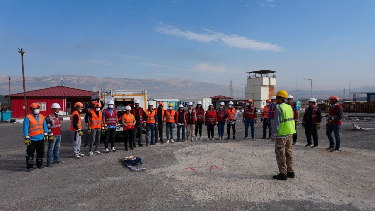 Eğitimin son gününde yapılan tatbikatta, senaryo gereği depremde enkaz altında kalan bir yaralının kurtarılması canlandırıldı. Katılımcılar, olay yeri yönetimi, tahliye yöntemleri ve ilk yardım uygulamaları konusunda pratik deneyim kazandılar.
