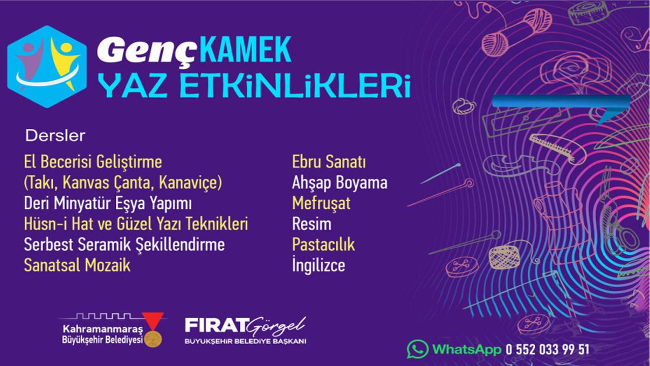 Yaz dönemi boyunca şehrin çeşitli noktalarında devam edecek olan Genç KAMEK kurslarına katılmak isteyen gençler, Kahramanmaraş Büyükşehir Belediyesi’nin resmi internet sitesinden başvuru yapabiliyor.