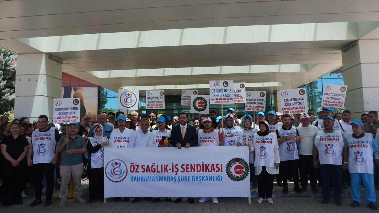 Kahramanmaraş’ta HAK-İŞ Konfederasyonu’na bağlı Öz Sağlık-İş Sendikası üyeleri, Necip Fazıl Şehir Hastanesi önünde bir araya gelerek, Kamu Çerçeve Protokolü kapsamında kendilerine sunulan zam teklifini protesto etti. Basın açıklamasında, sağlık emekçilerinin artan enflasyon ve yaşam maliyetleri karşısında ezildiği, teklif edilen yüzde 16’lık artışın beklentileri karşılamadığı vurgulandı.