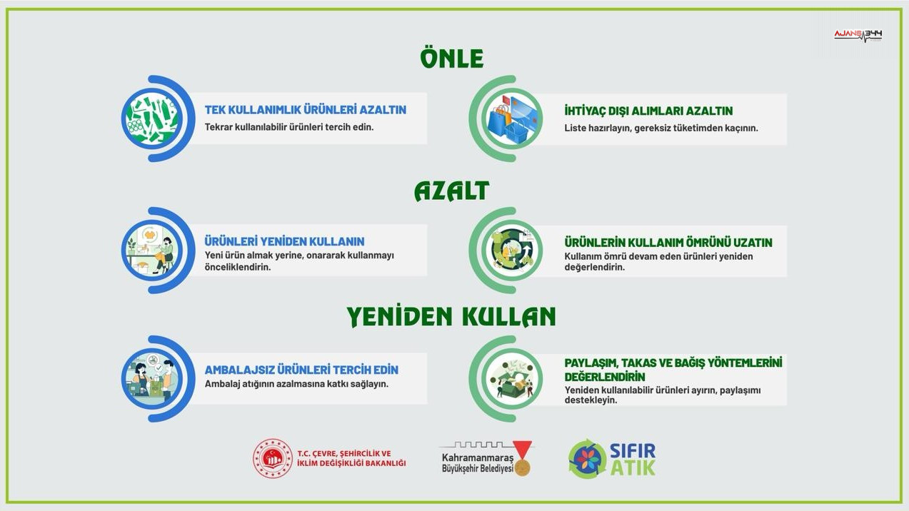 Sıfır atık yaklaşımının en temel adımı, atığın oluşmadan önlenmesidir. Kahramanmaraş Büyükşehir Belediyesi, bu noktada uzun ömürlü ürünlerin kullanımını ve ambalaj tüketiminin azaltılmasını öncelikli hedefler arasında görüyor.