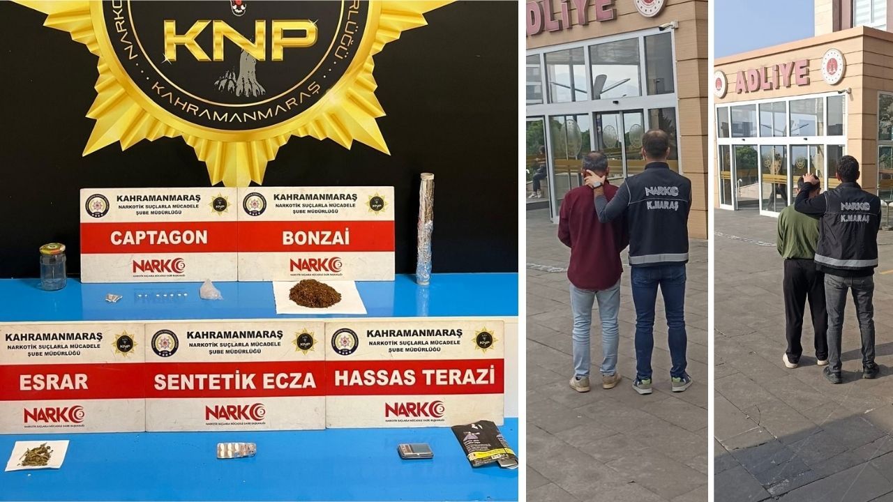 Kahramanmaraş Narkotik Suçlarla Mücadele Şube Müdürlüğü ekipleri, peş peşe gerçekleştirdikleri iki ayrı operasyonda çeşitli uyuşturucu maddeler ele geçirirken, suçüstü yakalanan iki kişiyi tutukladı. 19 Ekim 2025 günü gerçekleştirilen ilk operasyonda, şüphelilerin üzerlerinde ve ikametlerinde yapılan aramalarda 40,34 gram sentetik kannabinoid (bonzai), 2,82 gram esrar, 7 captagon hap, 5 sentetik hap ve 1 hassas terazi ele geçirildi.