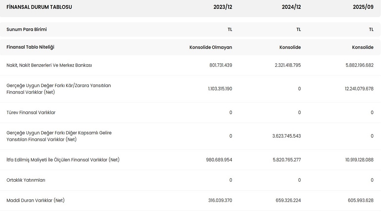 Tasarruf finansman alacakları yüzde 43 oranında yükselişle 10,86 milyar lirayı bulurken, tasarruf fon havuzundan borçları da yüzde 49 oranında artarak 21,9 milyar liraya erişti. Şirketin özkaynakları yüzde 38'lik artışla 6,56 milyar TL'den 9,04 milyar TL'ye ulaştı.