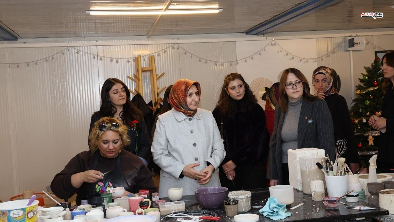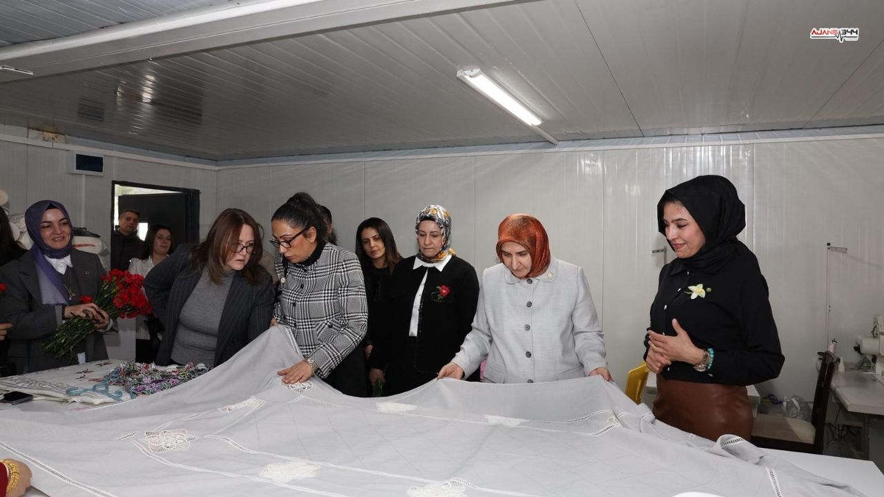 Ziyaret sırasında kadın girişimcilerle sohbet eden davetliler, el emeği ürünlerin hazırlanma süreçlerine ilişkin bilgi aldı ve girişimcilerin üretim faaliyetlerini yakından takip etti.