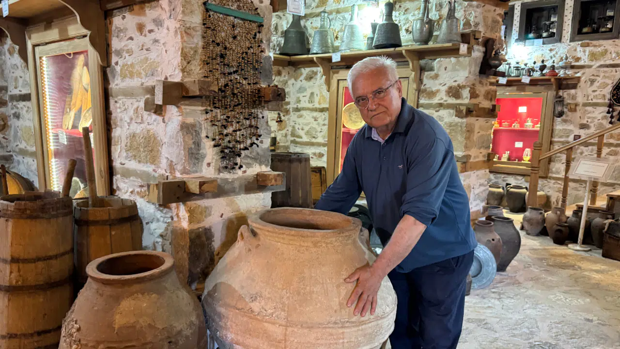 Kavasoğlu, "Küpün yüksekliği yaklaşık bir metre yüksekliğinde. Çapı da yaklaşık 90 santimetre genişliğinde. Yani bu küpe bal koyduğunuzu düşünürseniz yarım tondan fazla bal alacağını tahmin ediyorum. Tabii ki bu tarihi bir küp. Bu küp tarihi dokuyu bilenlerin çok ilgisini çekiyor. Bunu kaç tane arkeolog inceleyip karar verdi. Yoksa sade vatandaşın bunun dokusundan etkilendiğini sanmıyorum. Ama biz buraya gelenlere bunu anlatıyoruz. Burada yakın geçmişimize ait her şey var. Normal sade vatandaşın bunu anlayabilmesi mümkün değil. Biz vatandaşlara bunun senaryosunu anlatıyoruz. Bunun Müze Müdürlüğü tarafından incelendiğini ve bize zimmet edilerek burada sergilendiğini söylüyoruz" dedi.