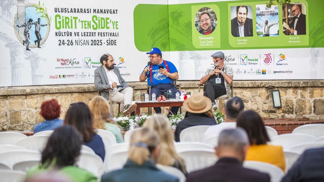 Zorba filminin özel gösteriminden sonra Hürriyet Gazetesi Yazarı ve Suare Dergi Yayın Danışmanı Sayım Çınar'ın moderatörlüğünde Sinema Yazarı Kerem Akça ve Kültür Sanat Yazarı Mustafa İri, Nikos Kazantzakis'in ölümsüz karakteri Zorba üzerinden hayata, özgürlüğe ve tutkulara dair derinlikli bir söyleşi gerçekleştirdi. Festivalin ev sahibi Manavgat Belediye Başkanı Dr. Niyazi Nefi Kara, hikâyesi Girit'te yaşanan ve Girit'te çekilen bir filmin Uluslararası Manavgat Girit'ten Side'ye Kültür ve Lezzet Festivali'nde gösterilmesinden büyük mutluluk duyduklarını belirtti. Bu filmin festival programına alınması fikrini veren Sayım Çınar'a, eserin verdiği mesajların Manavgatlı sinemaseverler tarafından daha iyi anlaşılması konusunda yorumlarda bulunan yazarlar Kerem Akça ve Mustafa İri'ye katkılarından dolayı teşekkür plaketi verdi.