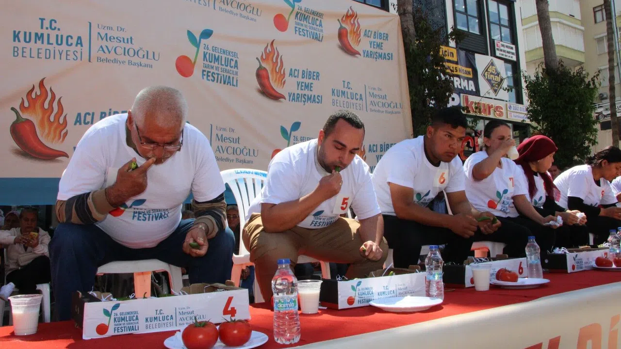 Bu yıl 27’ncisi düzenlenen festival kapsamında gerçekleştirilen acı biber yeme yarışması, büyük ilgi gördü. Kumluca Cumhuriyet Meydanı'nda düzenlenen yarışmada, 3 dakikada 398 gram acı biber yiyen Celal Derin, birinci oldu. Geçtiğimiz yıl ikinci olan Derin, bu yıl şampiyonluk hedefiyle yarışmaya katıldığını söyledi.