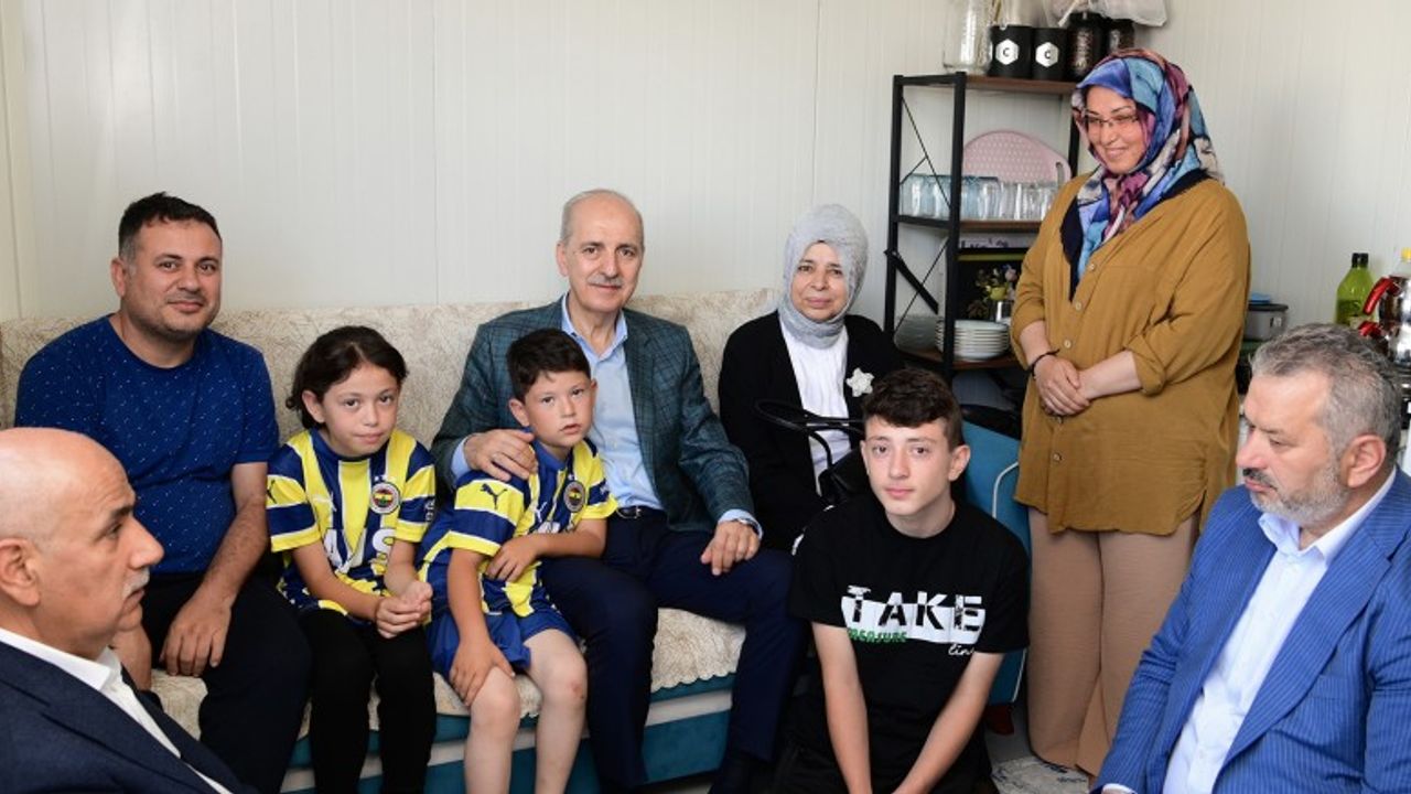 TBMM Başkanı Kurtulmuş açıklamalarının devamında, “Şehirlerin yeni bir takım fonksiyonlarla imar ve inşa edilmesi devletimizin öncelikli çalışmalarından birisi. Ümit ediyoruz ki Kahramanmaraş çok kısa süre içerisinde eski haline dönecek ve vatandaşlarımız hayatlarını çok daha iyi bir şekilde sürdürmeye devam edecek. Deprem bölgesinde vatandaşlarımızın acılarını hafifletmek için devletimizin tüm kurum ve kuruluşları olarak yoğun gayret sarf ediyoruz. Dünyada hemen hemen hiçbir milletin gösteremeyeceği büyük bir dayanışma ruhuyla, insanlarımız depremin ilk anından itibaren deprem bölgelerine yardım için seferber oldu. Büyük bir dayanışma örneği gösterdik. Bu dayanışma sayesinde acılarımızın bir nebze olsun hafiflediğine şahit olduk. Bu dayanışmayı ortaya koyan tüm vatandaşlarımıza teşekkür ediyoruz. Allah bir daha bu millete böyle acılar göstermesin inşallah” cümlelerini kaydetti. Programın devamında heyet, EXPO 2023 alanındaki Savunma Sanayii Konteyner Kent’i ziyaret ederek vatandaşların bayramlarını kutladı.