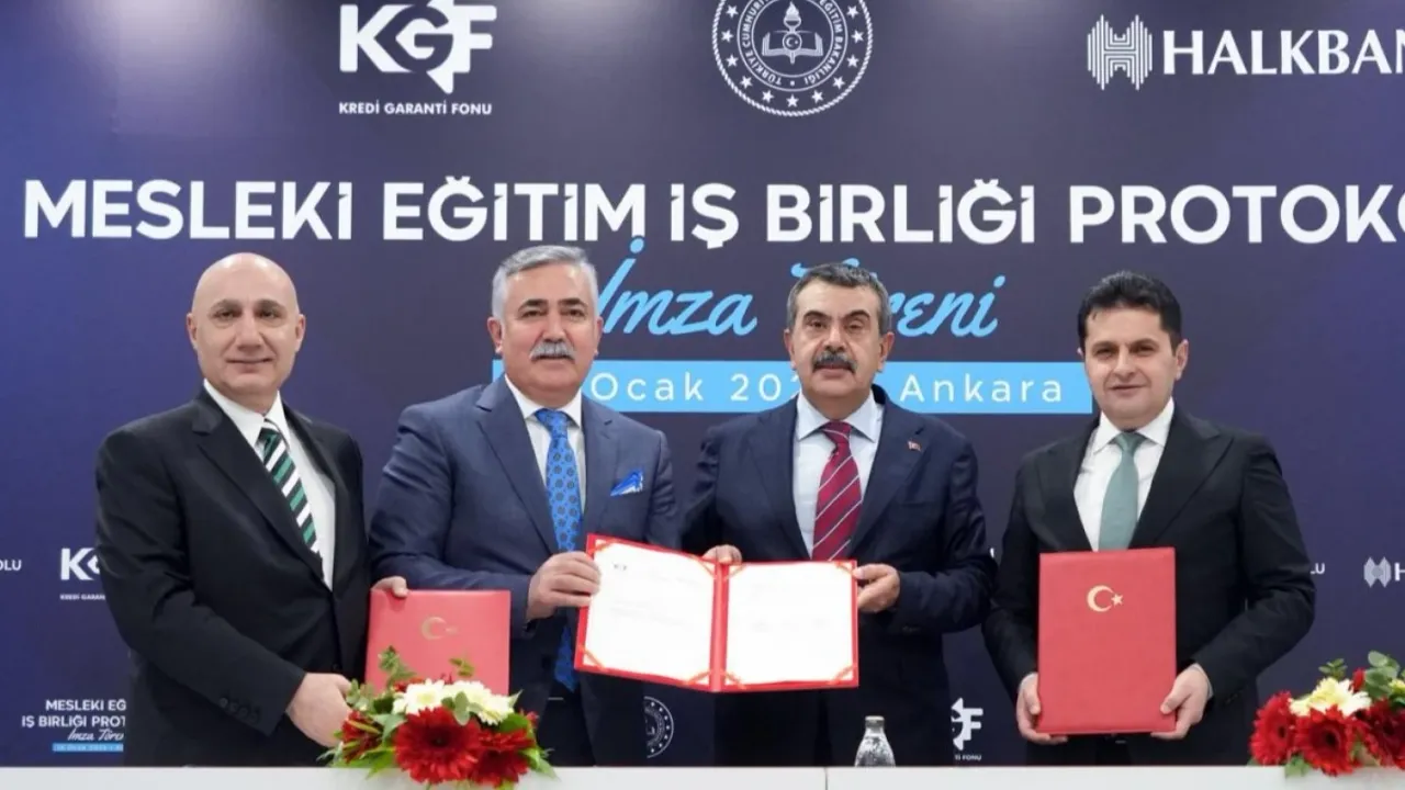 Mesleki ve teknik ortaöğretim mezunu gençlerin iş hayatına adım atmalarını kolaylaştıracak önemli bir adım atıldı. Milli Eğitim Bakanlığı, Kredi Garanti Fonu (KGF) ve Halkbank arasında imzalanan “Mesleki Eğitim İş Birliği Protokolü” ile genç girişimcilerin iş kurmaları ve KOBİ'lerin istihdam olanaklarını artırmaları hedefleniyor.