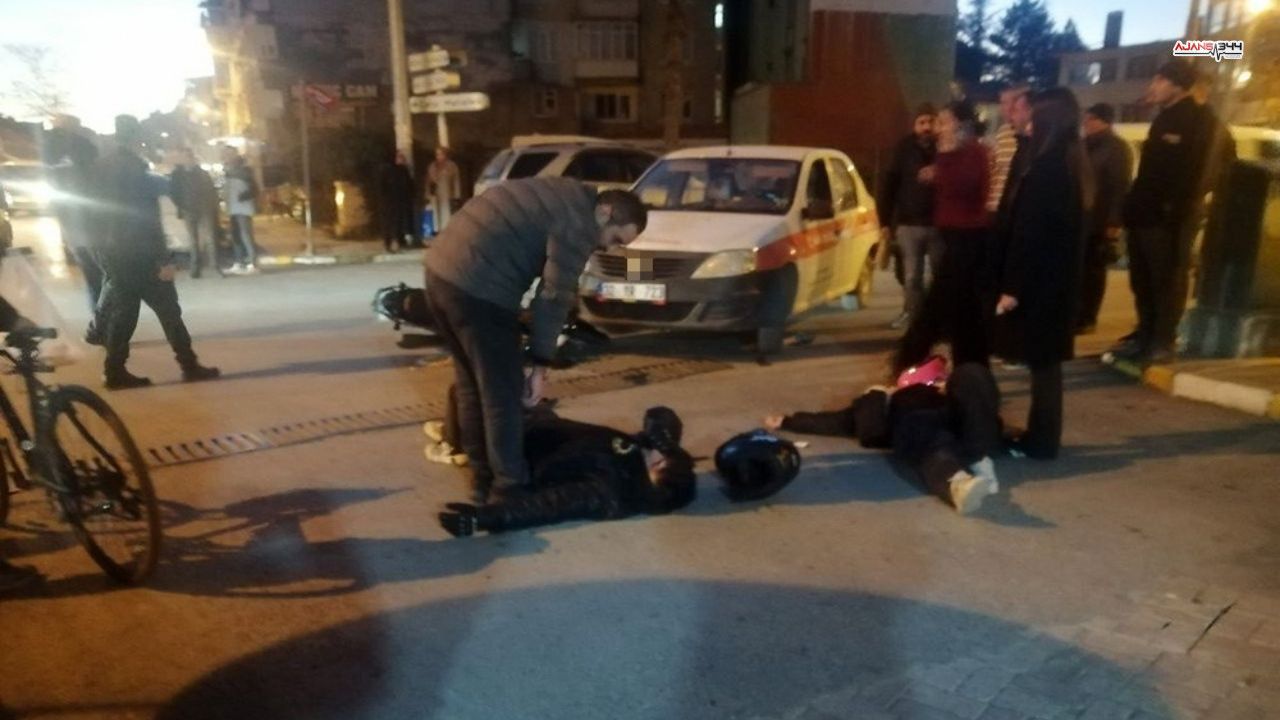 Kaza, ilçeye bağlı Pazaryukarı Mahallesi Hastane Caddesi üzerinde akşam saatlerinde meydana geldi. Edinilen ilk bilgilere göre, H.A. idaresindeki motosiklet ile M.A. yönetimindeki otomobil aynı cadde üzerinde karşılıklı seyir halindeyken çarpıştı. Çarpışmanın şiddeti ile motosiklet sürücüsü H.A. ve yolcu olarak bulunan Ş.A. isimli kadın yere savruldu. Her iki kişi de olay yerinde yaralı olarak bulundu.