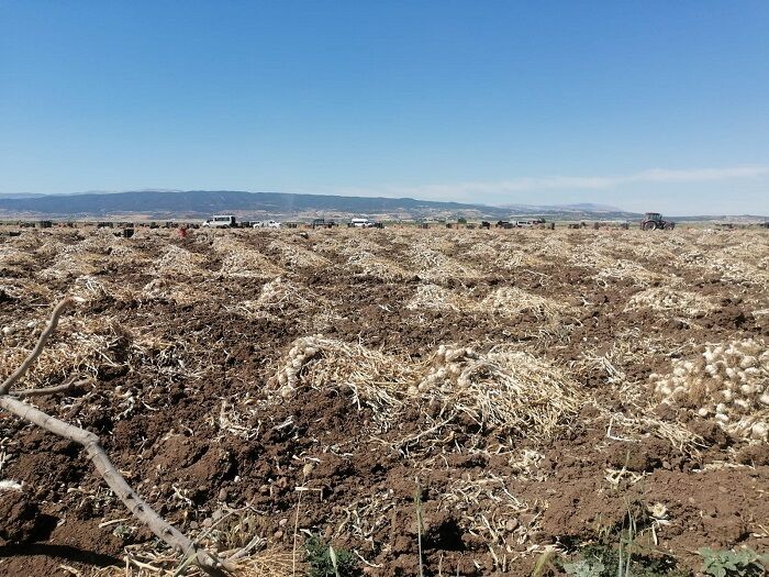 2024 üretim yılında yaklaşık 8 bin 500 dekarlık alanda ekilişi yapılan sarımsakta, dekar başına 2-2.5 ton verim alınması planlanıyor.