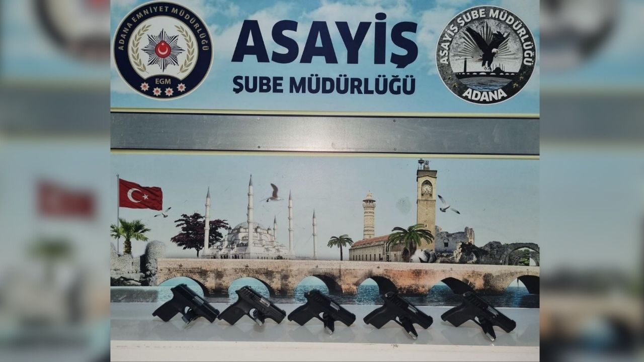 Adana’da polis ekipleri tarafından gerçekleştirilen denetim sırasında şüpheli hareketleriyle dikkat çeken bir kişinin elindeki poşette yapılan aramada 5 ruhsatsız tabanca ele geçirildi. Gözaltına alınan şüpheli, çıkarıldığı mahkemece tutuklanarak cezaevine gönderildi.