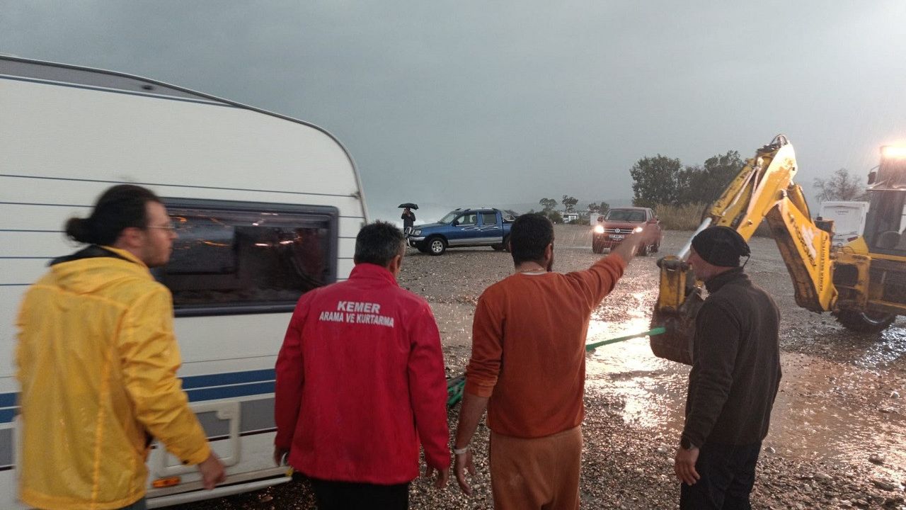 Antalya'nın Kemer ilçesinde şiddetli yağmur sırasında iki karavan denize sürüklendi. Karavanlardan birinde mahsur kalan Rus turistler, Kemer Belediyesi Afet İşleri Müdürlüğü ile KEMKUT ekipleri tarafından kurtarıldı.