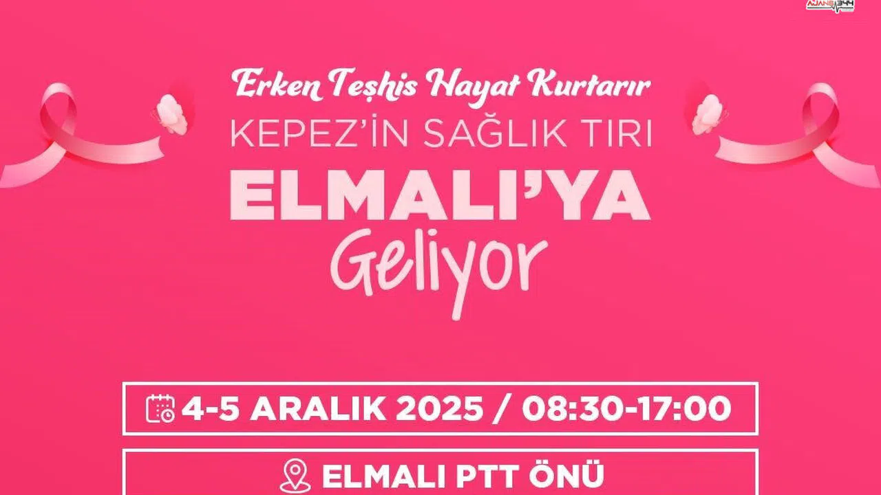 Kepez Belediyesi’nin Mobil Sağlık Merkezi, 4-5 Aralık’ta Elmalı’da ücretsiz mamografi, HPV ve kolon kanseri taramaları gerçekleştirecek.