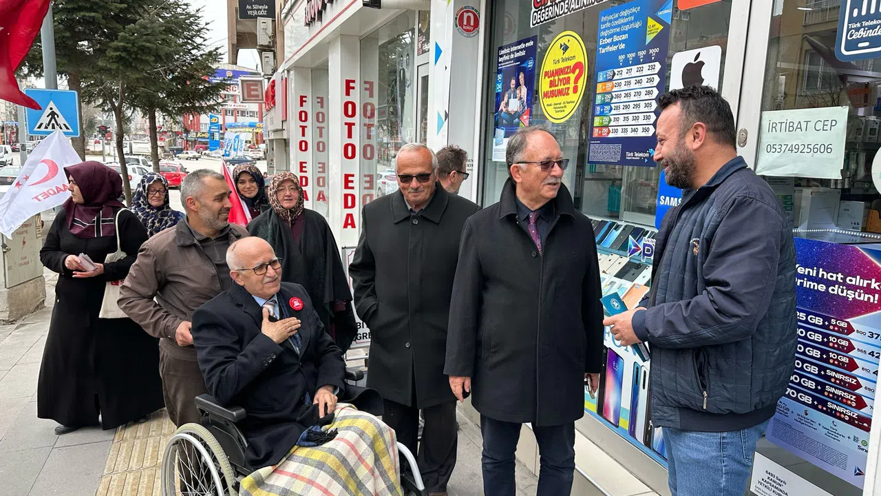 Burdur’da 5 Mart tarihinde üzerine ağaç devrilerek yaralanan Saadet Partisi Belediye Başkan Adayı Adnan Ersan, Saadet Partisi Antalya Milletvekili Şerafettin Kılıç, partililer ve aynı olayda yaralanan oğlu ve Belediye Meclisi Adayı Taha Ersan ile birlikte Gazi Caddesi’nde esnaf ziyareti yaptı. Tekerlekli sandalye ile esnaf ziyareti yapan Ersan’ı gören vatandaşlar geçmiş olsun dileklerinde bulundu.