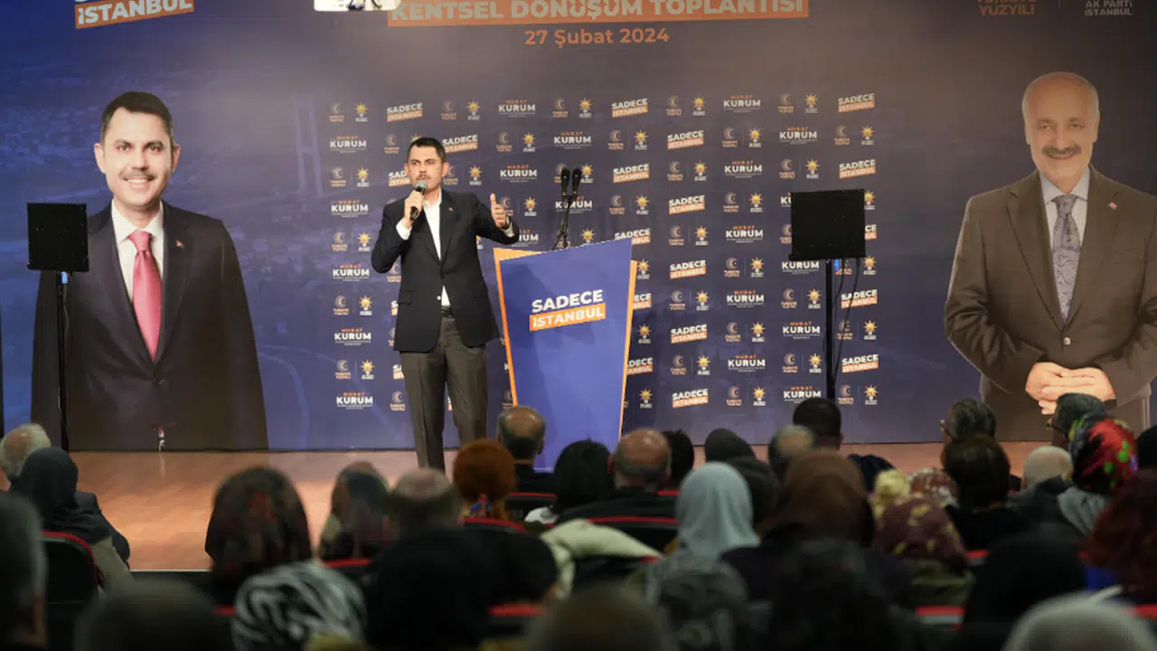 İstanbul Büyükşehir Belediye Başkan Adayı Murat Kurum, Kartal’da Uğur Mumcu Mahallesi sakinleri ile bir araya geldi. Kentsel dönüşüm toplantısına katılan Kurum, “Biz bugün buraya alnımız açık geldik. Çünkü verdiğimiz bütün sözleri yerine getirmiş olmanın özgüvenine sahibiz. Bizim mazimiz aydınlıktır. Geçmişte ortaya koyduğumuz başarılardır. İşimiz kimliğimiz, sözümüz senedimizdir” dedi. Kurum, İstanbul’un 39 ilçesi için toplamda 650 bin konut inşa etme hedeflerinin altını çizerek, “Vatandaşımızın ödemeleri konutun bitiş tarihinde başlayacak. İlk yıl faizsiz sabit taksitle, sadece 5 bin 833 lira taksitle, evin büyüklüğüne göre vatandaşlarımız dönüşümünü hızlı bir şekilde gerçekleştirecek. Bununla da kalmayacağız, tam 100 bin lira taşınma yardımı vereceğiz. İşte bu kampanyanın 15 Nisan’da başvurularını almaya başlayacağız” diye konuştu.