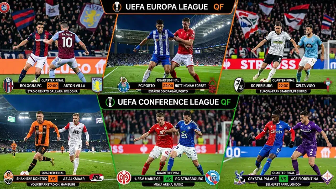 Avrupa futbolunda çeyrek final heyecanı bu akşam yaşanacak. UEFA Avrupa Ligi ve UEFA Avrupa Konferans Ligi kapsamında birbirinden kritik karşılaşmalar aynı saat diliminde başlayacak. Takımlar, yarı final avantajı elde etmek için sahaya çıkacak.