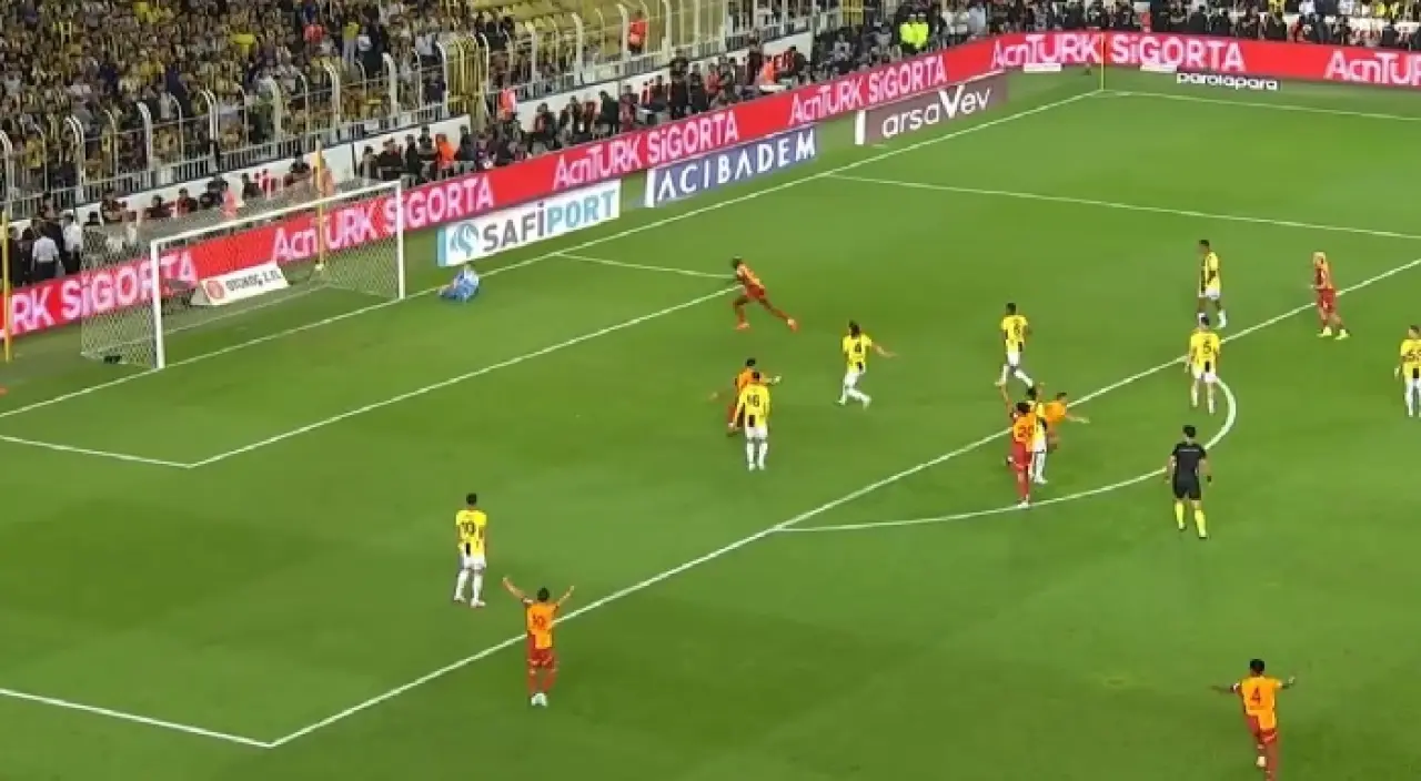 Karşılaşmanın 11. dakikasında Fenerbahçe, Cherif’in savunma arkasına sarktığı pozisyonda Davinson Sanchez’in müdahalesiyle penaltı kazandı. Beyaz noktanın başına geçen Talisca, 13. dakikada topu dışarı göndererek takımı adına büyük bir fırsatı tepti. Bu pozisyondan kısa süre sonra Galatasaray, Sane ve Nene arasındaki ikili mücadelede penaltı beklese de hakem Yasin Kol devam kararı verdi.